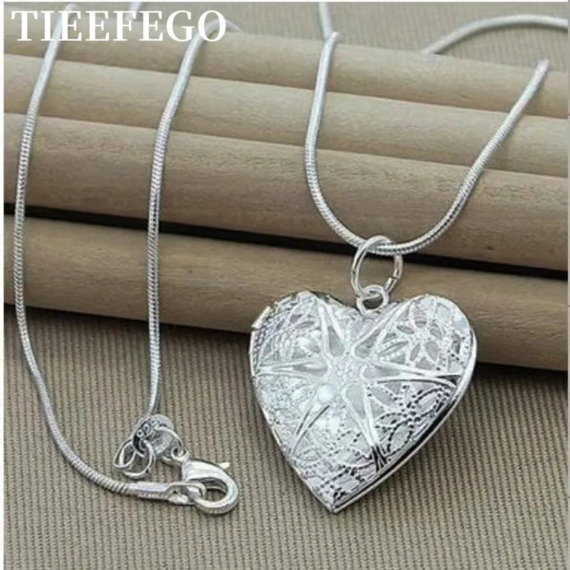 This elegant pendant necklace features a heart-shaped photo frame, perfect for keeping your loved ones close to your heart. Made of high-quality 925 silver, it is an excellent wedding or special occasion jewelry piece.