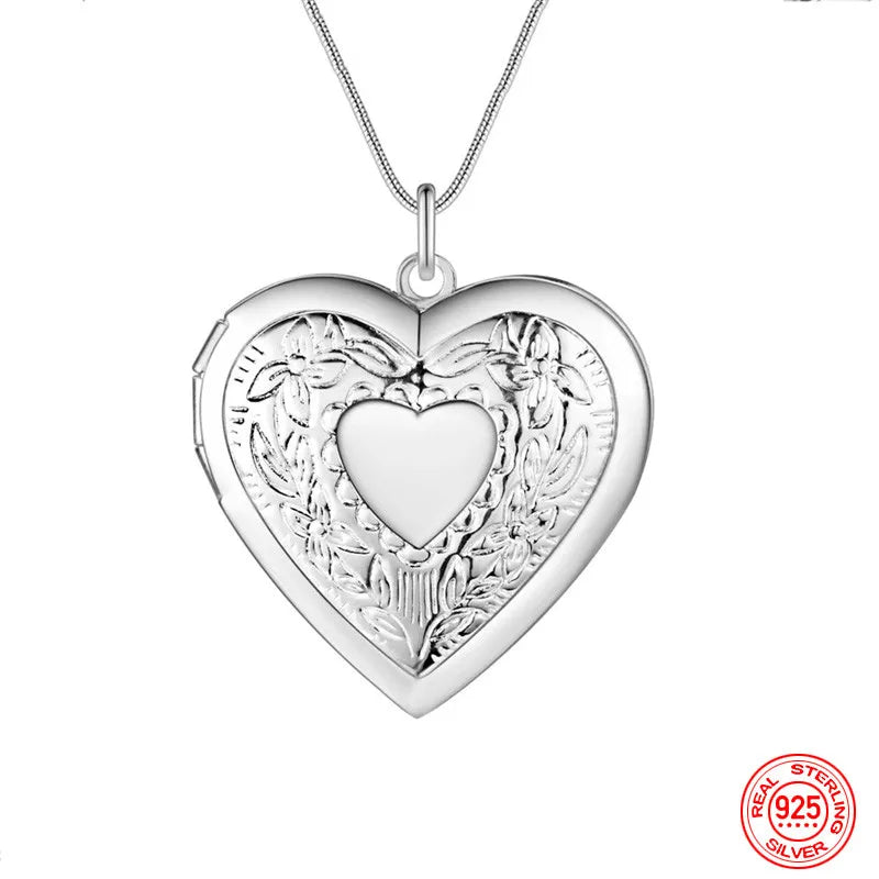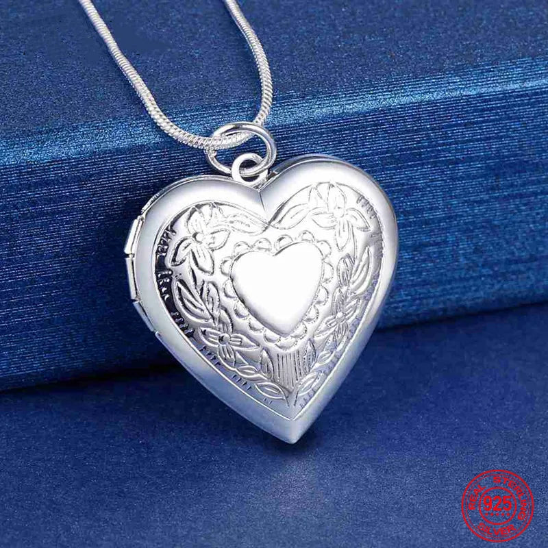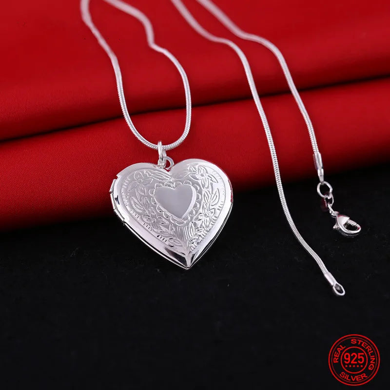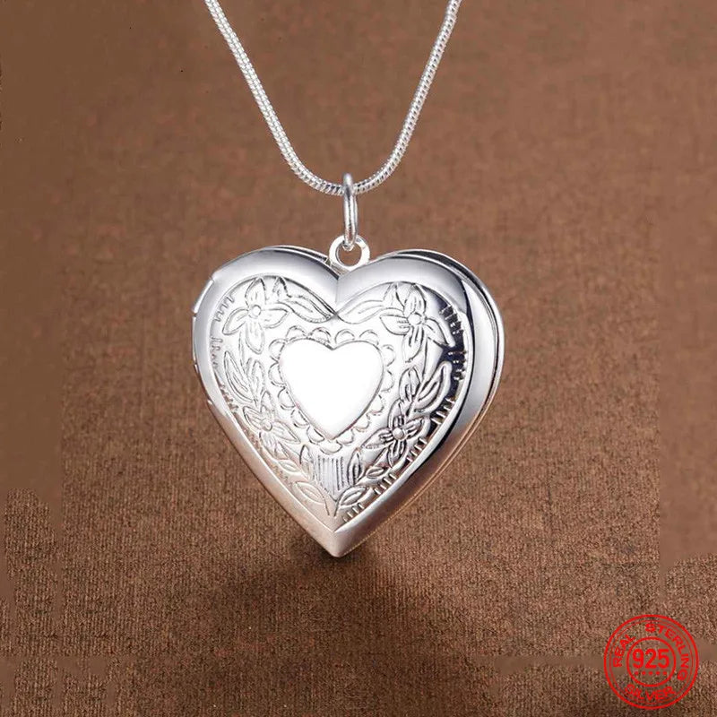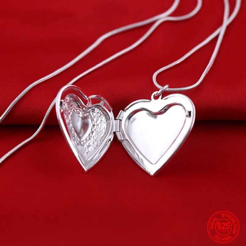 This beautiful pendant necklace features a heart-shaped photo frame design, crafted from high-quality 925 sterling silver. Perfect for weddings and special occasions.