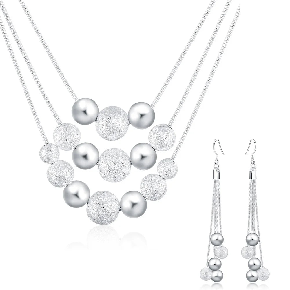 925 Silver Jewelry Set Beads Necklace Earrings Accessories