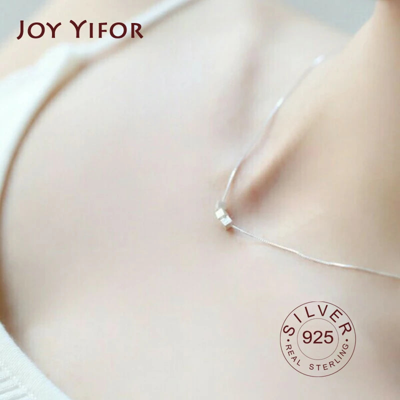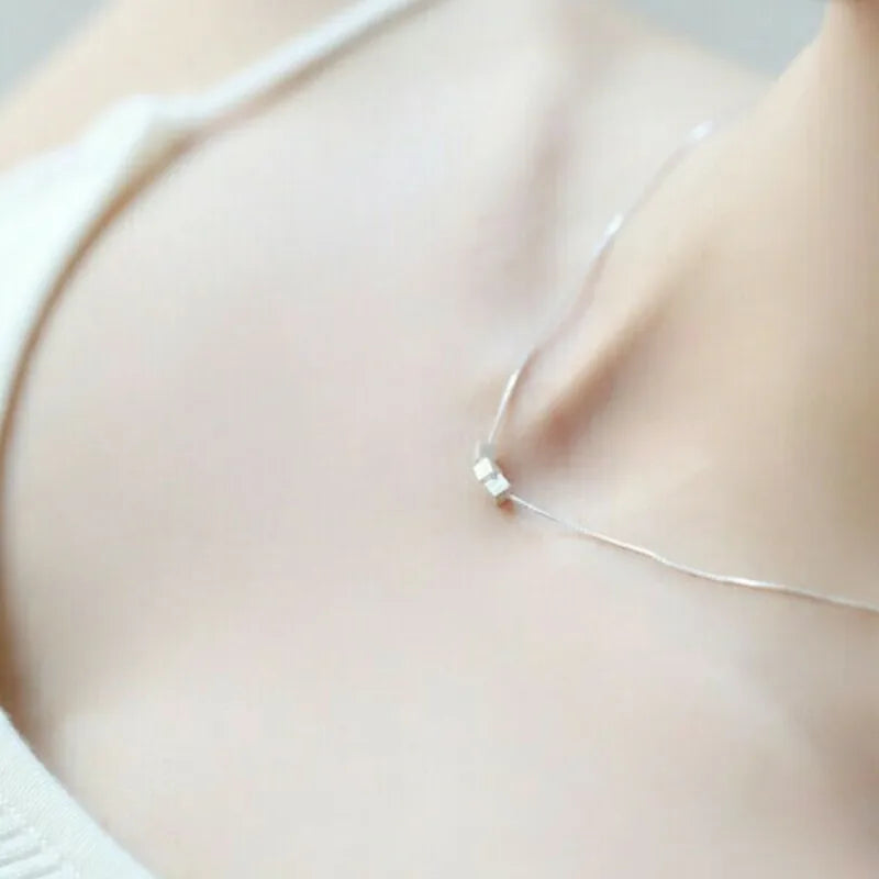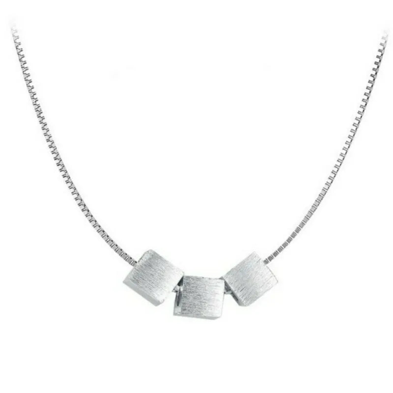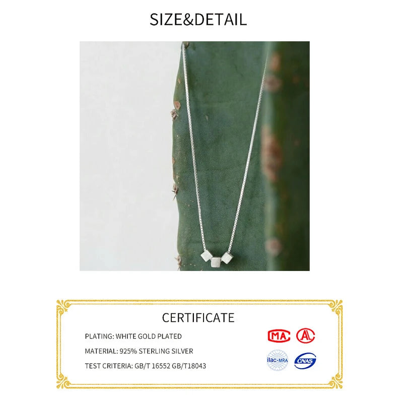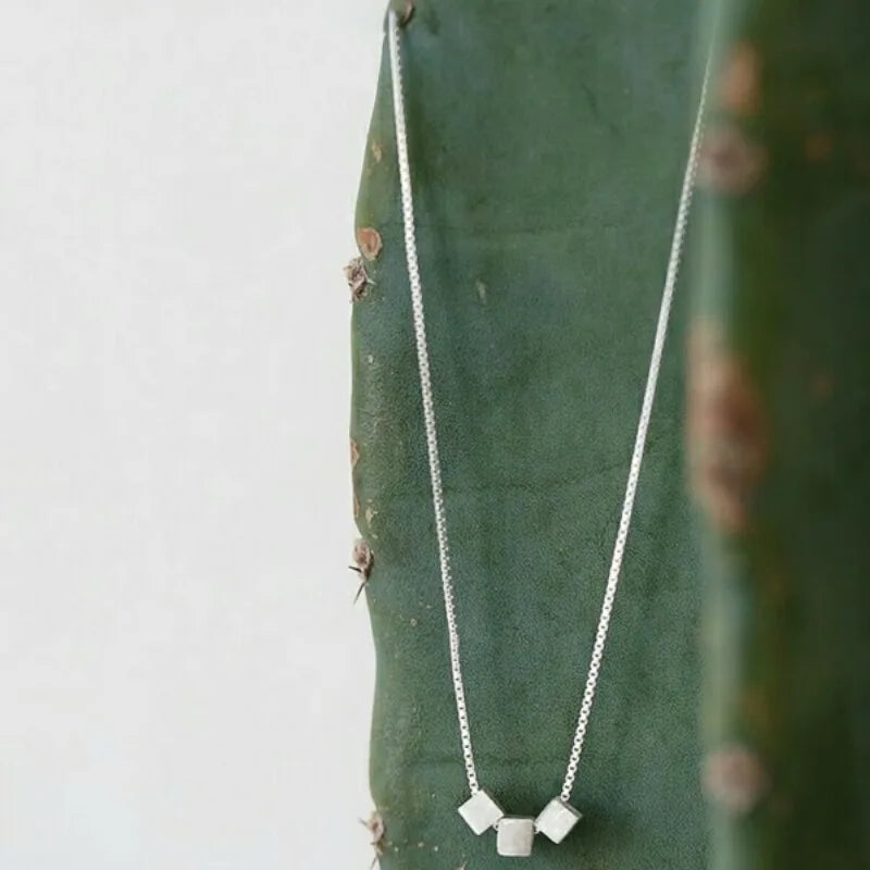 Elegant 925 sterling silver necklace for women featuring 3 squares design. This bohemian long chain necklace is a statement piece of fine jewelry.