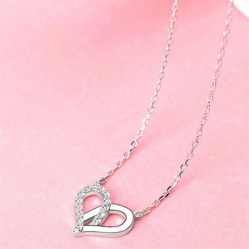 This stunning necklace features a hollow heart design with sparkling cubic zirconia stones. Perfect for girls and women.