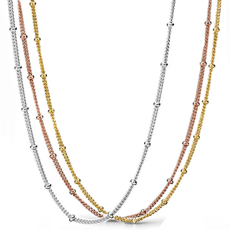 Create your own unique jewelry with this basic adjustable necklace that is perfect for bead charm DIY projects. Made of high-quality 925 sterling silver, this necklace features a beautiful combination of rose and silver shine beads.