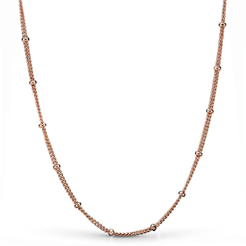 This basic adjustable necklace is perfect for creating your own bead charm DIY jewelry. Made from high-quality 925 sterling silver, the chain features a mix of rose and silver shine beads for a stylish look.