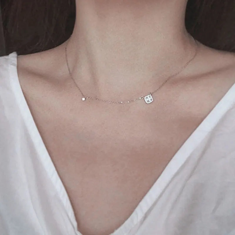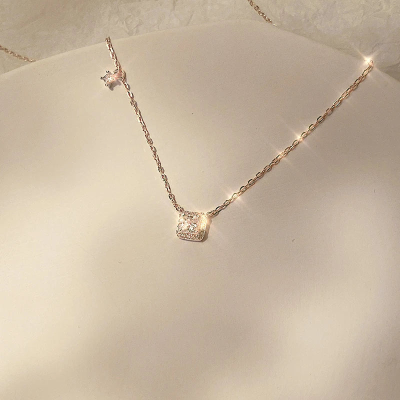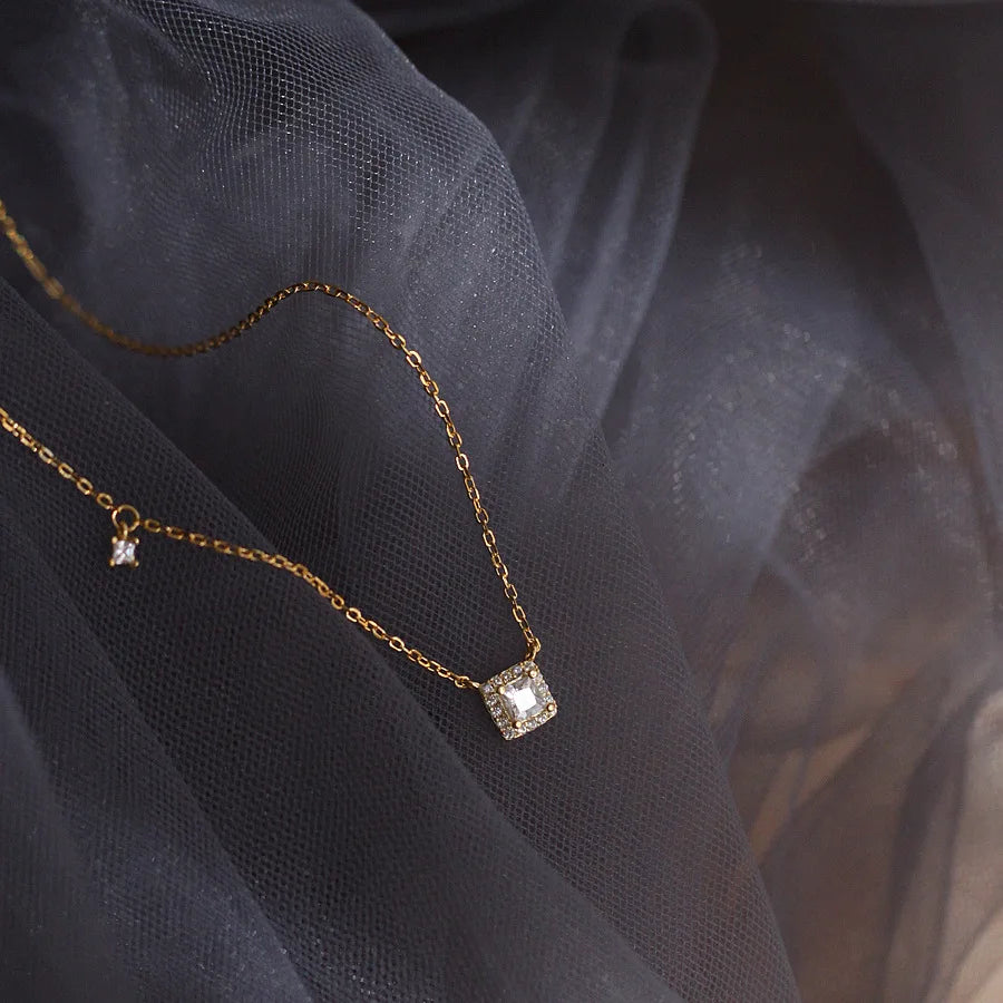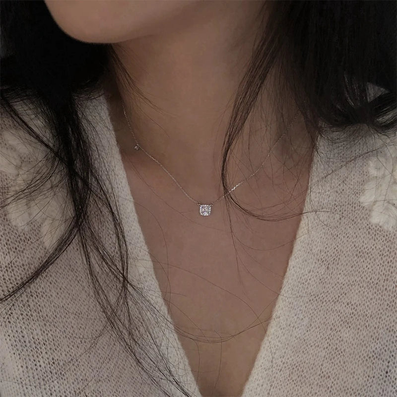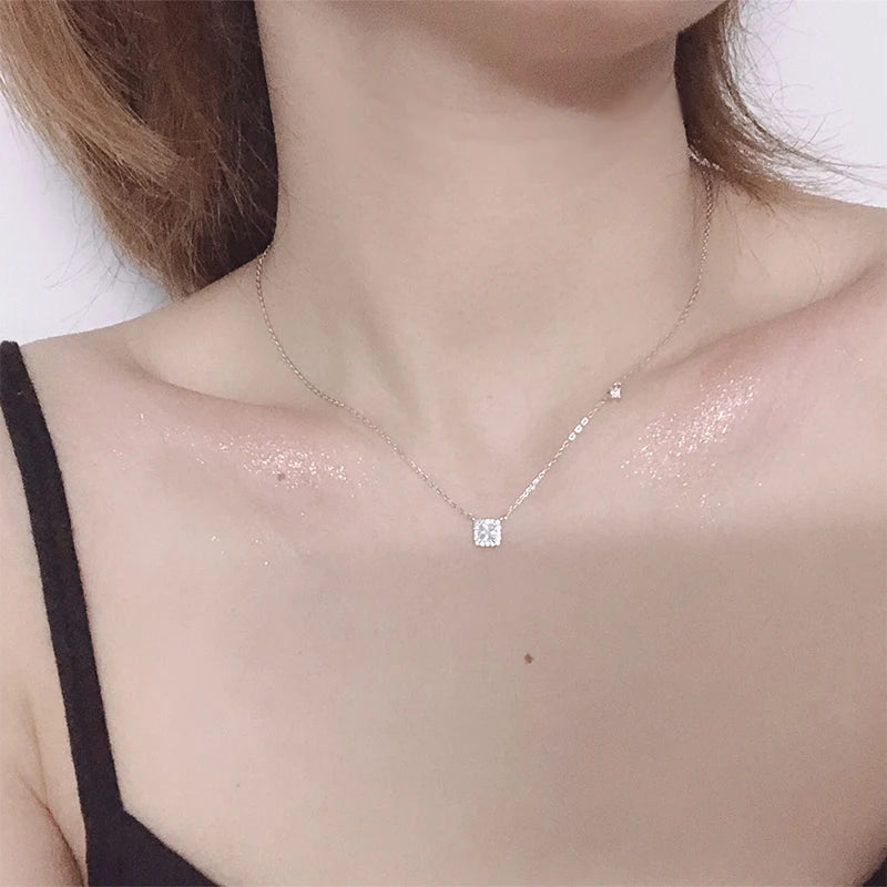 Elegant and timeless, this pendant necklace is crafted from 925 sterling silver with a small square diamond. Perfect for weddings, parties, or as a gift.