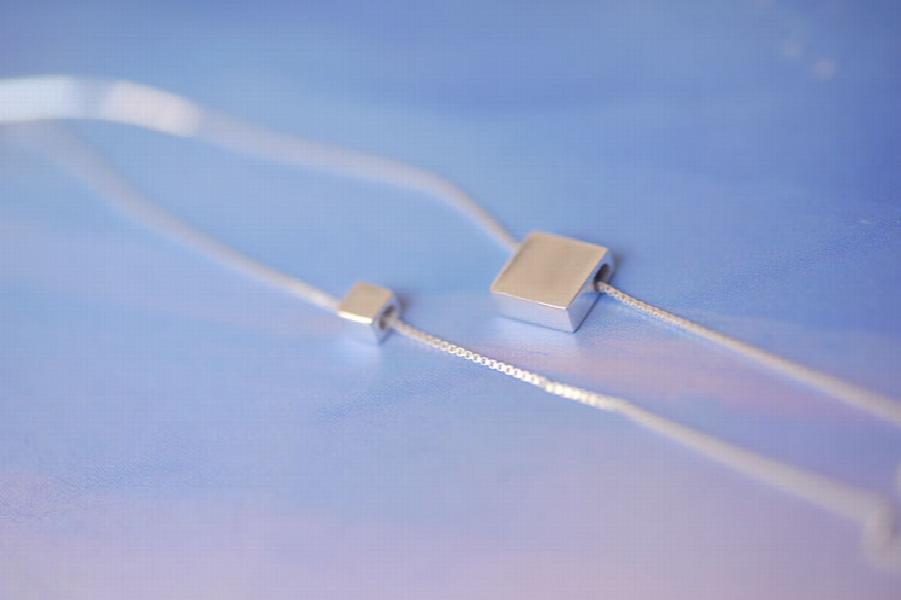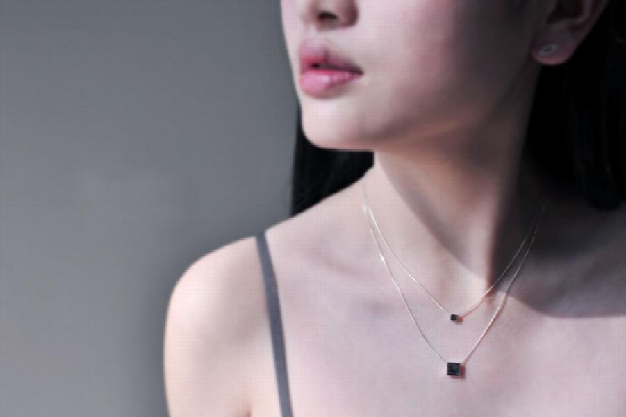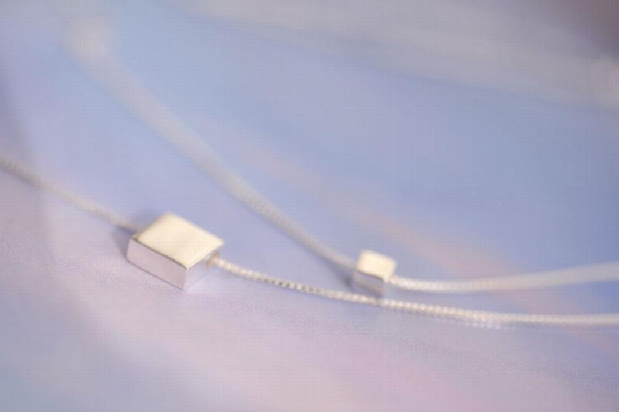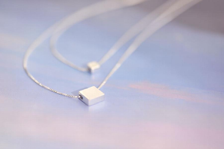 Elegant 925 silver double necklace with square pendants, perfect for women who love modern jewelry.