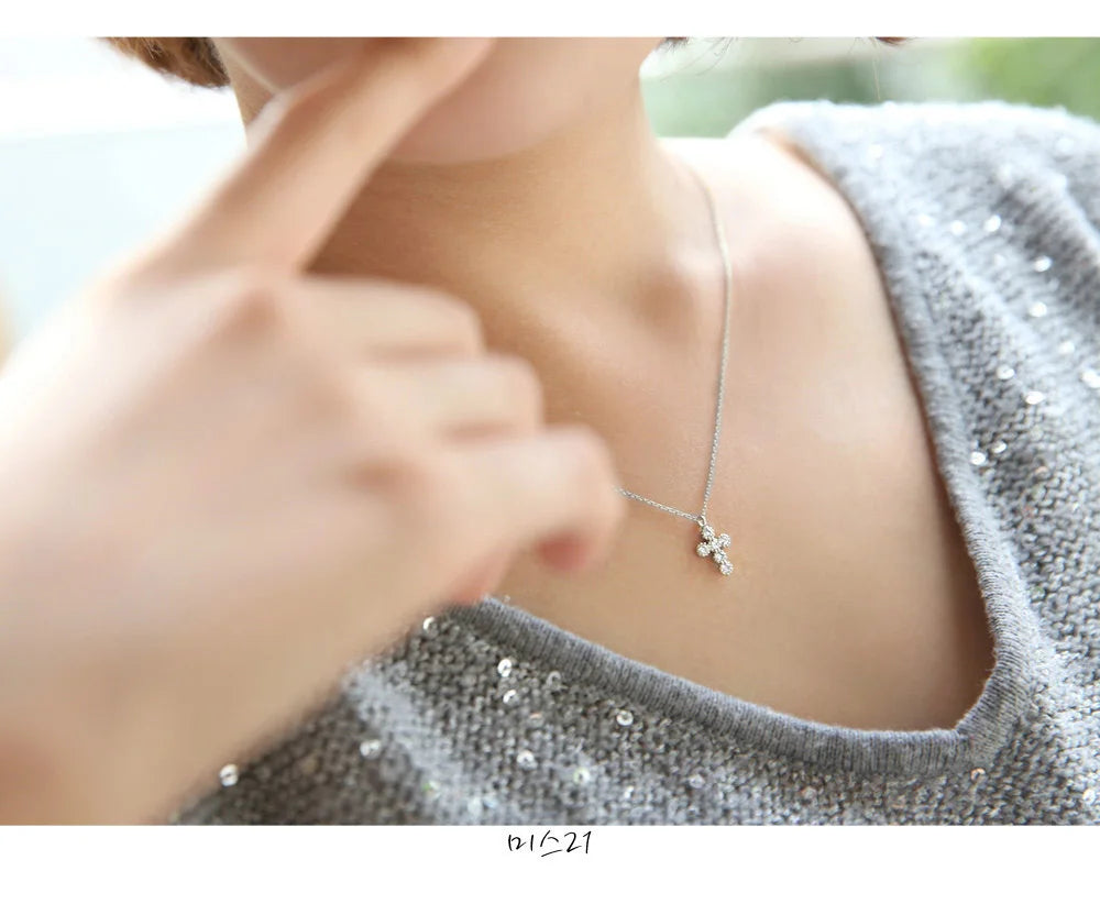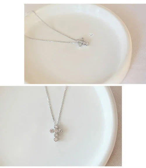 This stunning 925 sterling silver necklace features a zircon-encrusted cross pendant, making it a bold statement piece of jewelry for women.