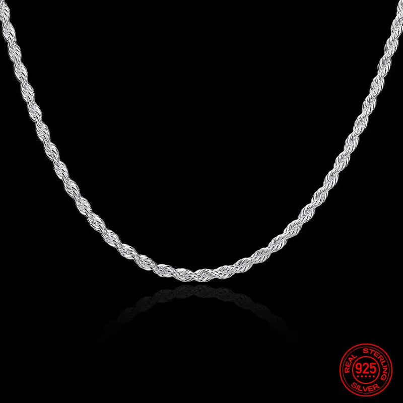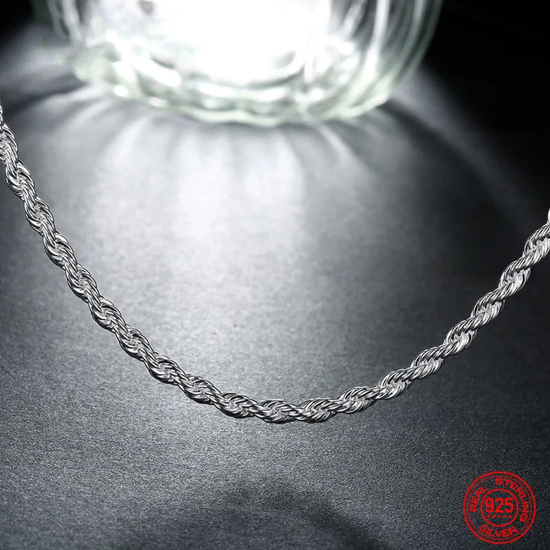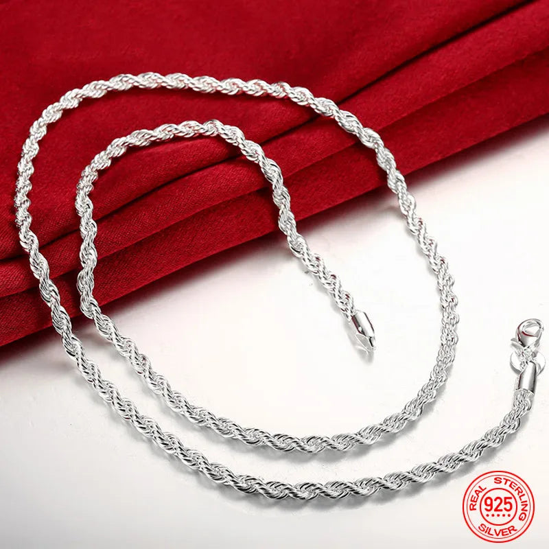 925 Sterling Silver 4MM Twist Necklace Geometric Rope Chain Jewelry