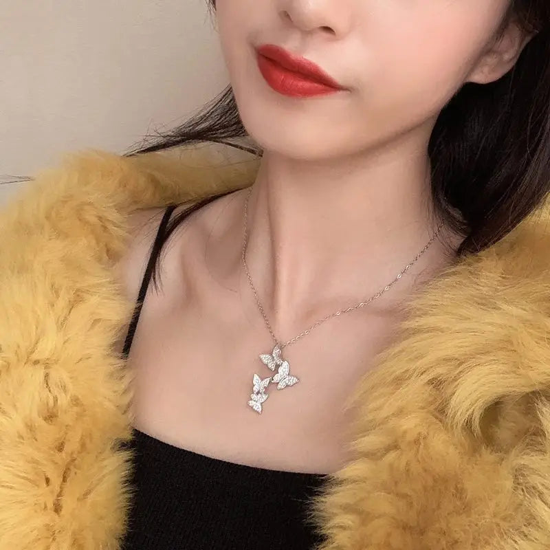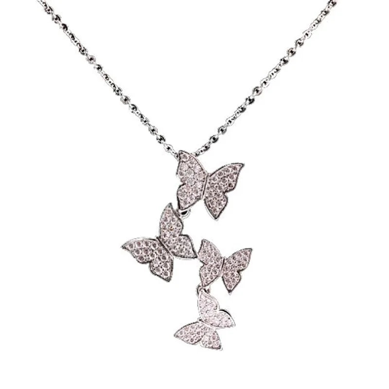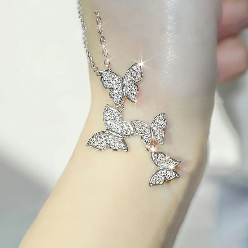 925 Sterling Silver Zircon Butterfly Necklace Choker Gift for Mom