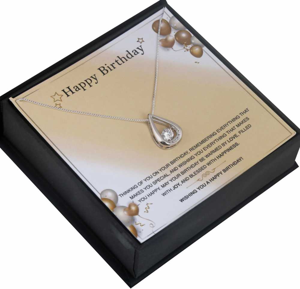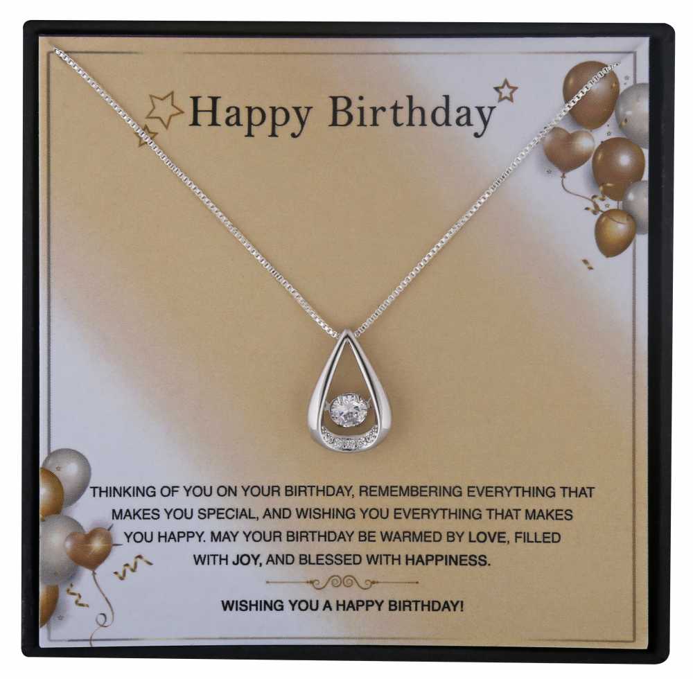 Surprise your special someone on their birthday with this lovely personalized jewelry gift. The necklace is made of silver plated and the pendant is studded with cubic zirconia. The message card is beautifully written and your wishes speak to the celebrant for years together. Get this gift for your person and express your love with a shine.