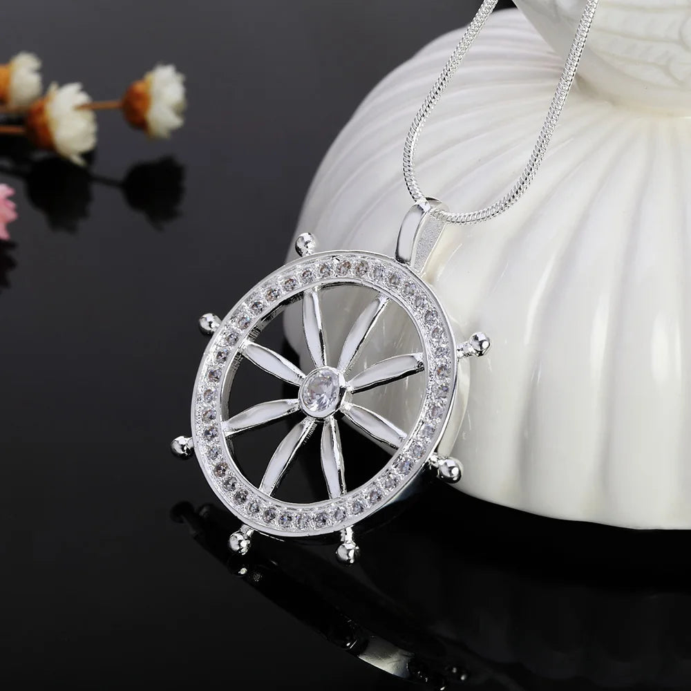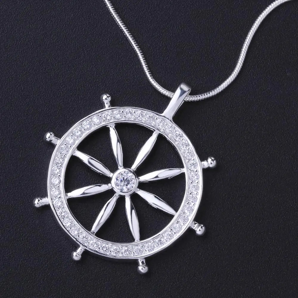 Add a touch of nautical charm to your outfit with this 925 Sterling Silver pendant necklace featuring a Sailor rudder design adorned with sparkling crystals. Perfect for parties and holiday wear.