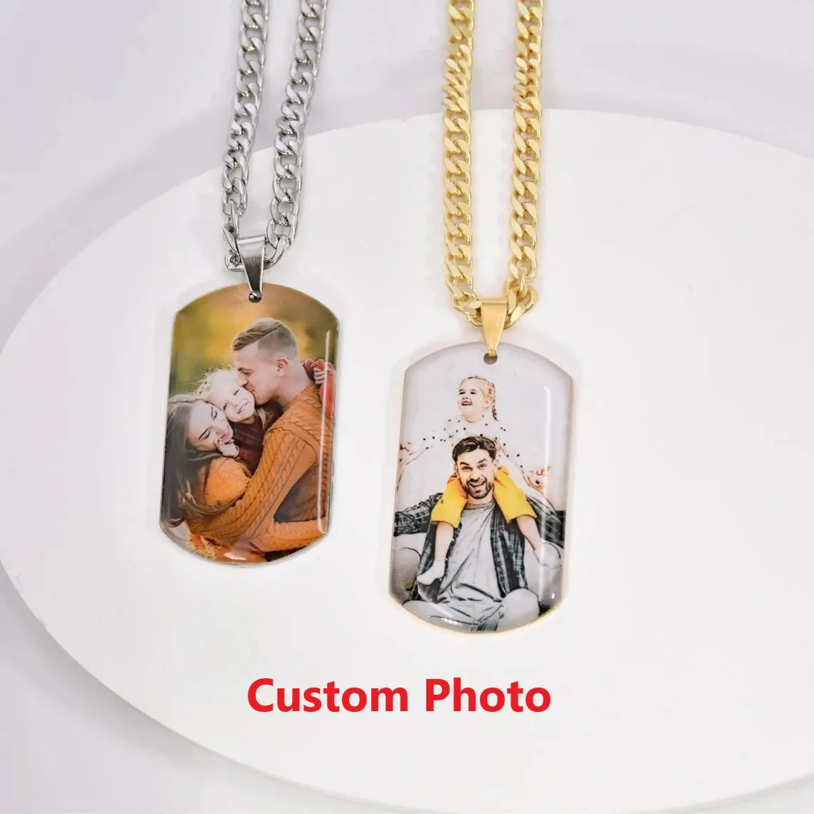 This stainless steel pendant necklace is a beautiful memorial jewelry piece for women and men. It can be personalized with a colorful photo engraving and nameplate.