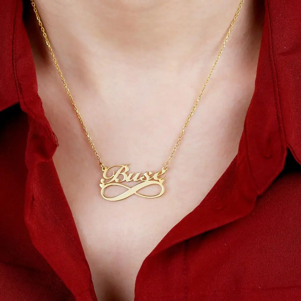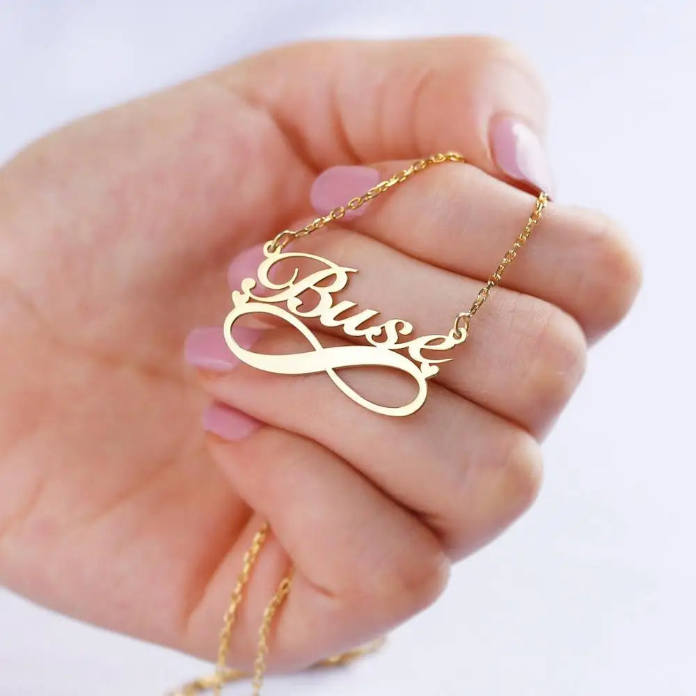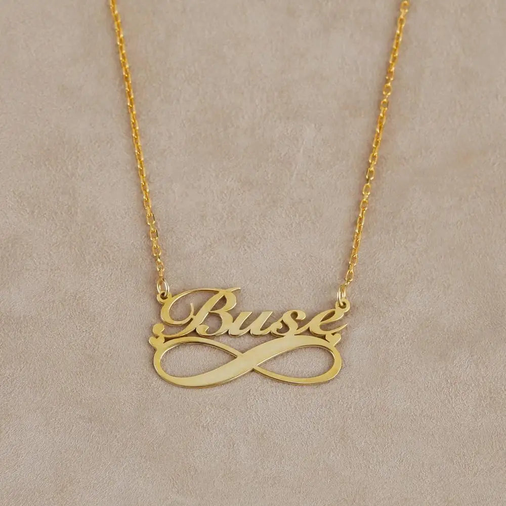This beautiful boho-style necklace features a small hearts infinity pendant personalized with your chosen name. Made of high-quality stainless steel, this necklace is a perfect accessory for women.