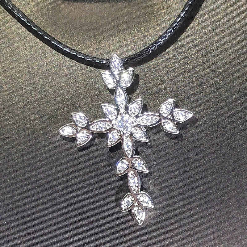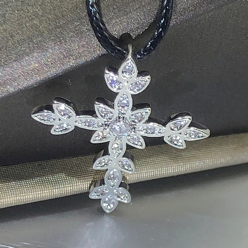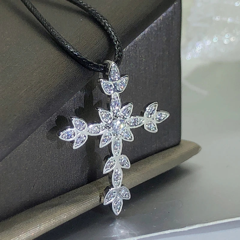 This cubic zirconia cross pendant necklace is perfect for men and women. It features a unique design that is ideal for weddings or everyday wear. The dainty chain adds a touch of elegance to any outfit.