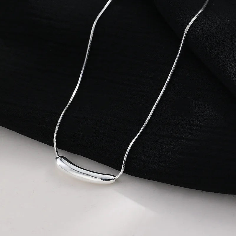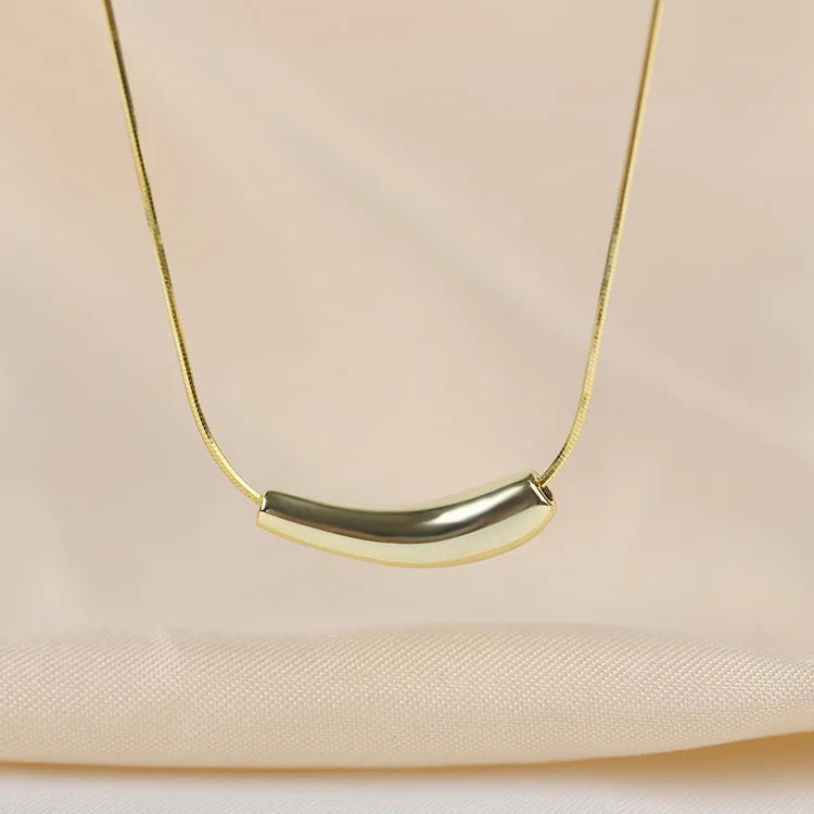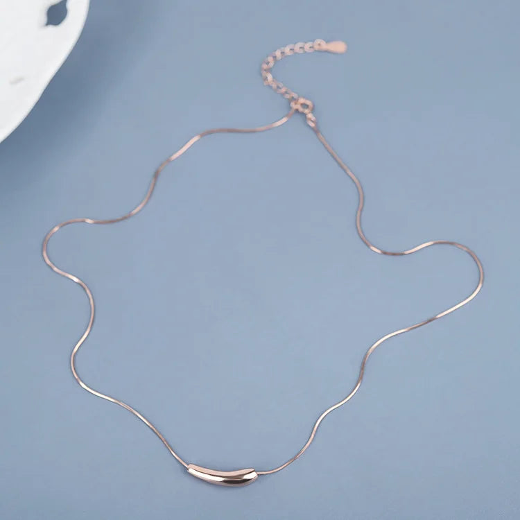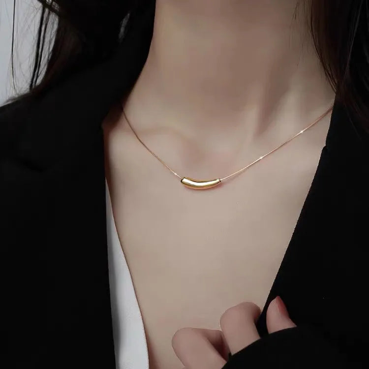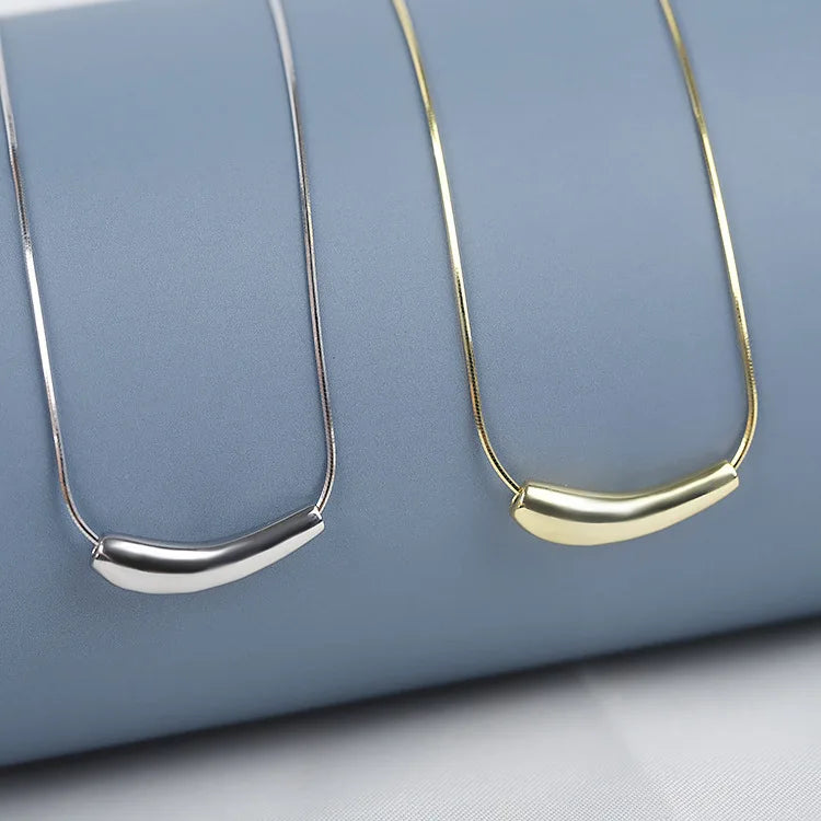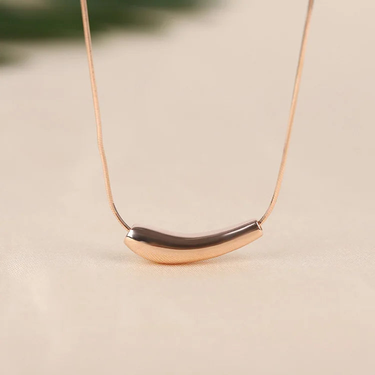 This necklace features a small eggplant shape pendant with golden silver tube design. It is a perfect accessory for women to add a touch of charm to their outfit.