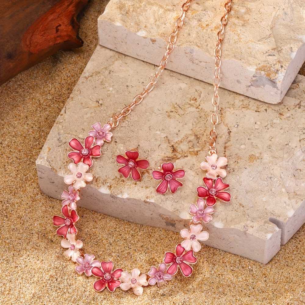 Bling Queen is an affordable fashion jewellery brand with various product types like bracelets, necklaces, earrings, rings, etc. suitable for women, men and kids. Add a touch of luxury to your collection with the Meicem Elegant Floral Jewelry Set, featuring a beautifully crafted alloy necklace and earrings, adorned with artificial crystals and an enamel geometric design. The set is plated with rose gold, offering a sophisticated, timeless look for any occasion. Adjustable and versatile, this set is perfect for both daily wear and special events, making it an ideal gift for the fashion forward woman. Elevate your style with this elegant set that combines floral charm with contemporary design. Whether dressing up for a special occasion or adding elegance to your everyday look, this set ensures you shine with grace and sophistication.