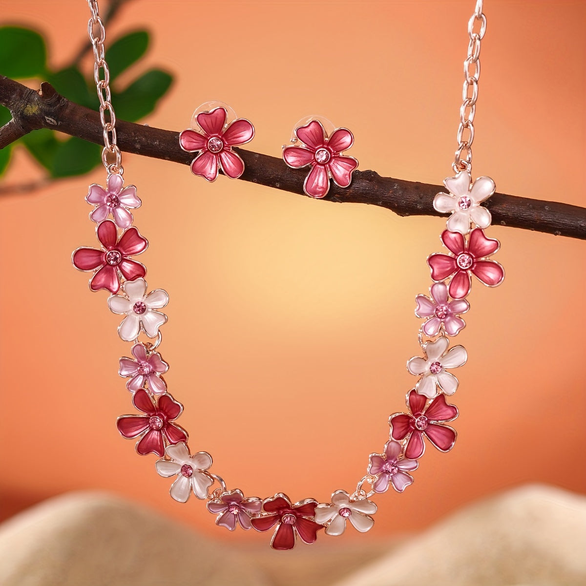 Elegant Floral Jewelry Set with Artificial Crystals Alloy Necklace and Earrings