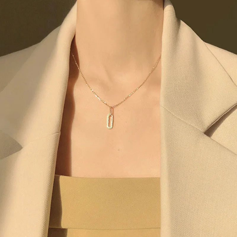 - Geometric rectangle pendant design adds a modern and stylish flair.