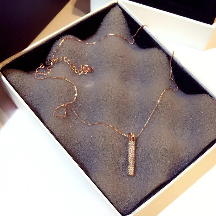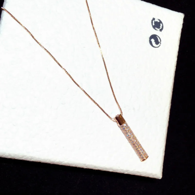 Chic and elegant geometric pendant necklace with Zircon detailing, perfect accessory for women.