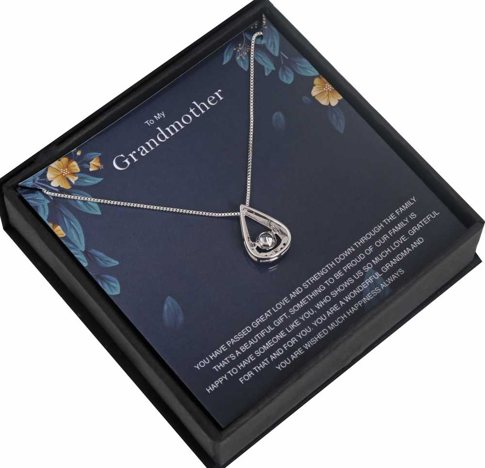 Grandmothers are a package of love, laughter, kindness, and warmth. Make the incredible woman of your life feel special with this jewelry gift. The gift contains an elegantly crafted silver plated necklace with a cubic zirconia pendant. What makes the gift so special is the warm message card in it written especially for your lovely lady.