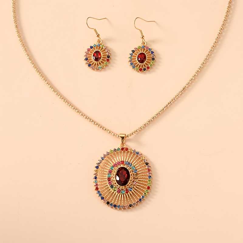 Holiday Style Jewelry Set Sun Ray Pendant Necklace & Dangle Earrings