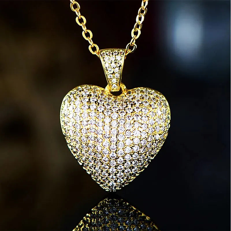 This romantic and sweet heart pendant necklace is fully inlaid with zircon, perfect for weddings and parties.