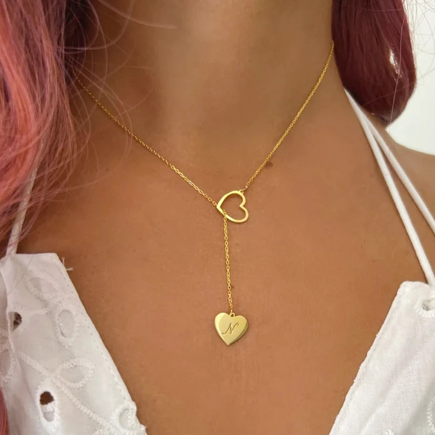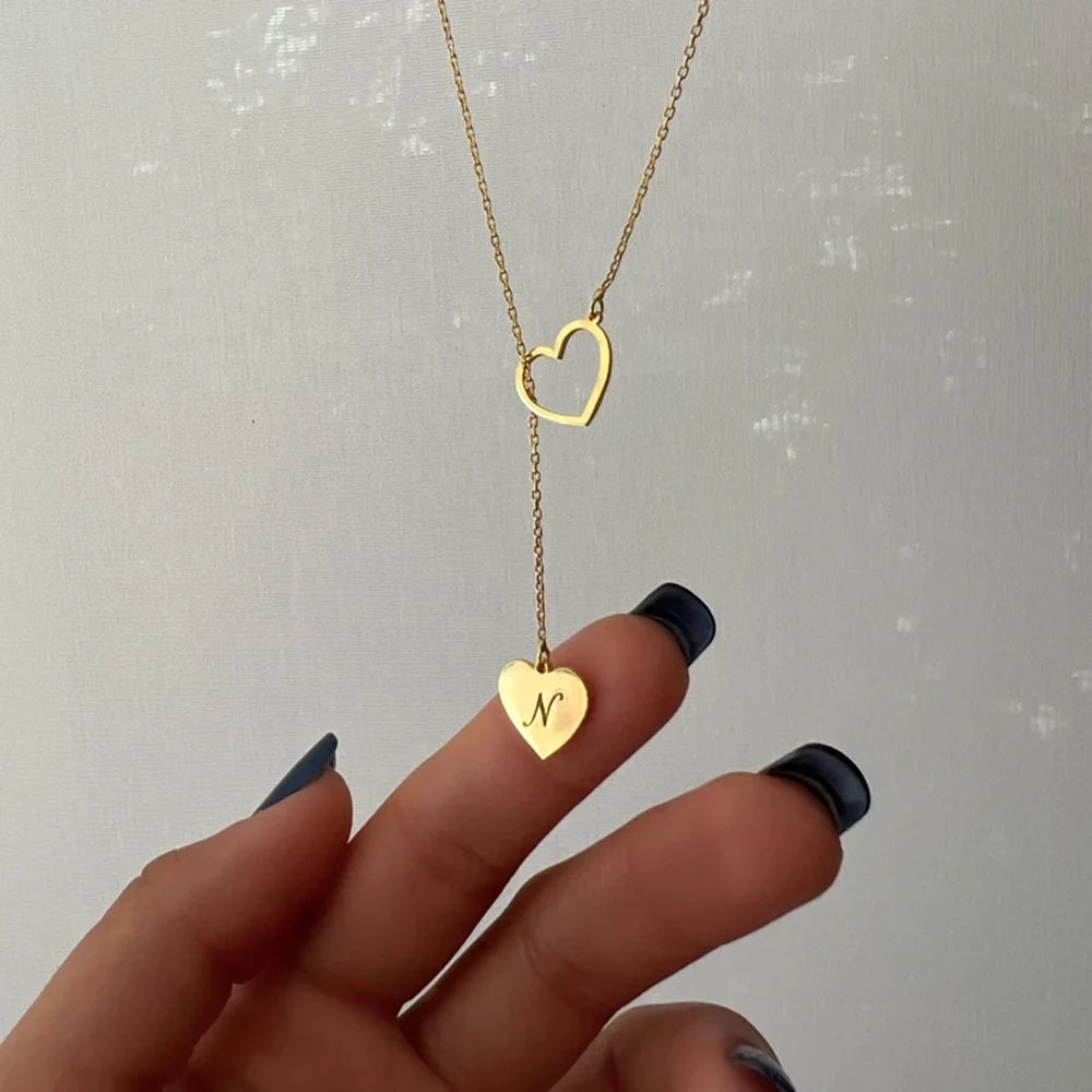 - Stainless steel necklace with initial heart pendant