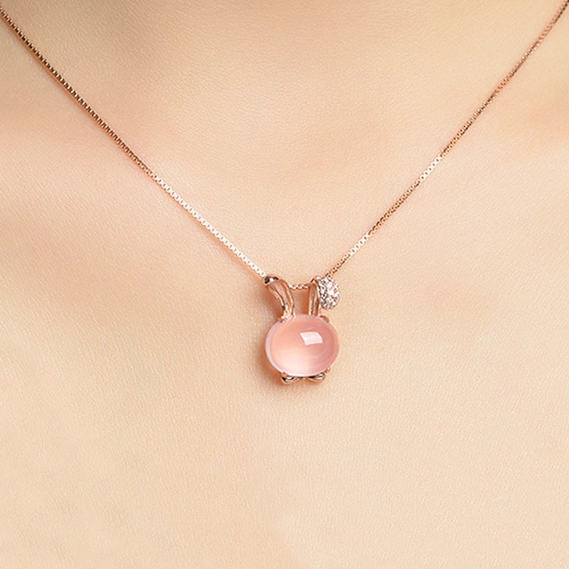 Exquisite necklace featuring a Rose Rabbit Crystal Pendant made of Rose Quartz and Pink Opal, perfect for parties and gifting.