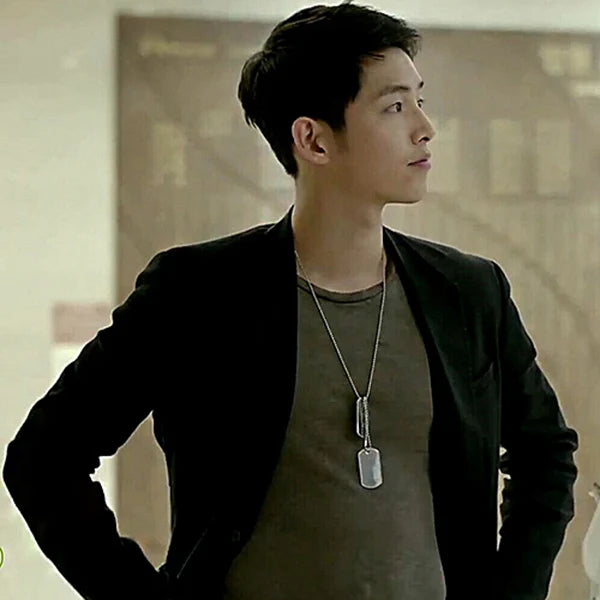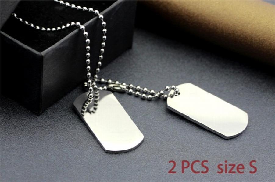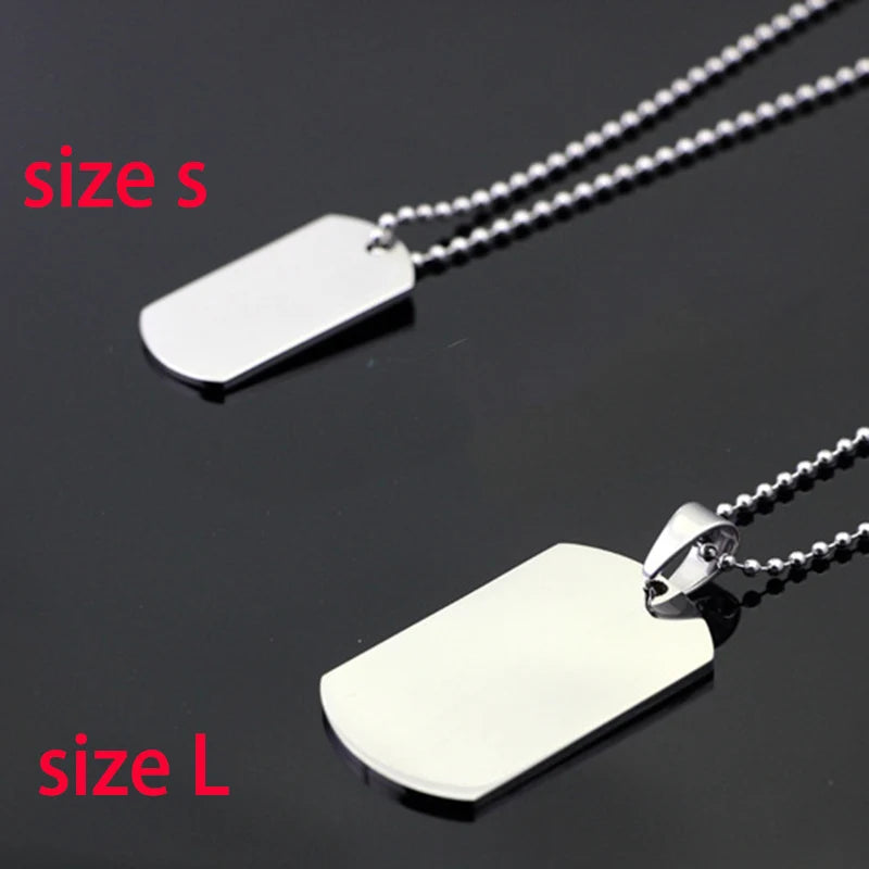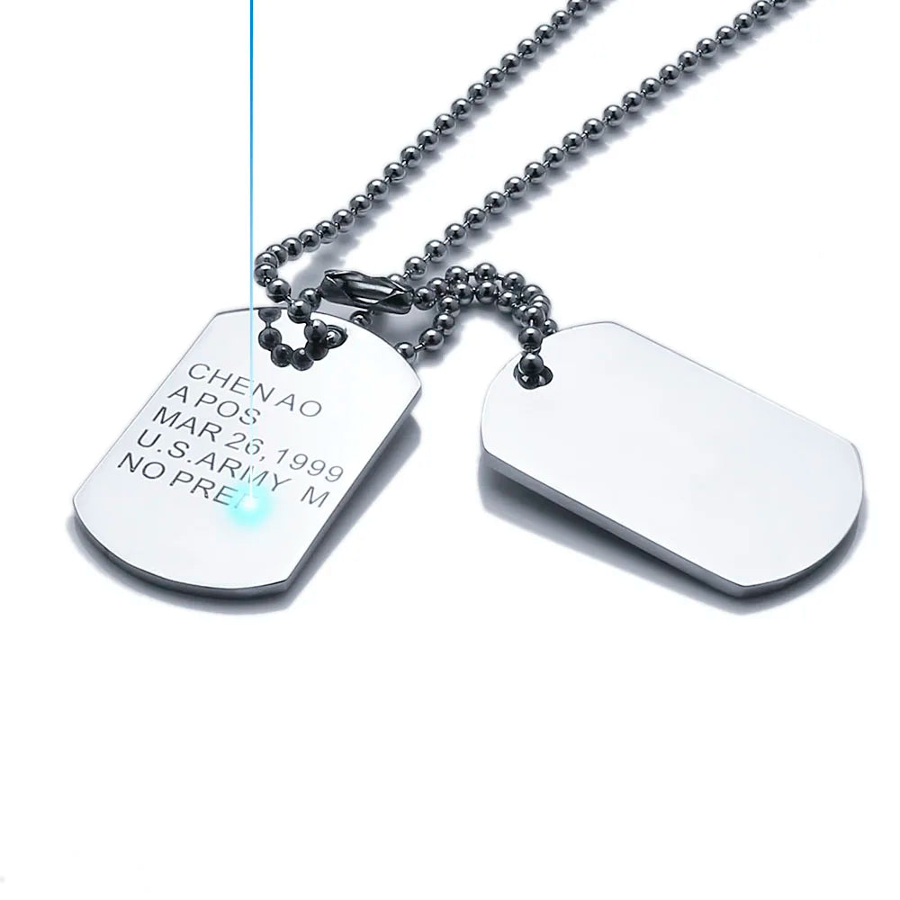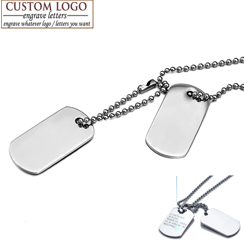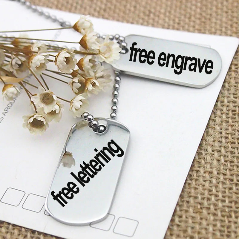 Stylish stainless steel pendant necklace for men with military army ID tag design. Can be engraved for personalization.