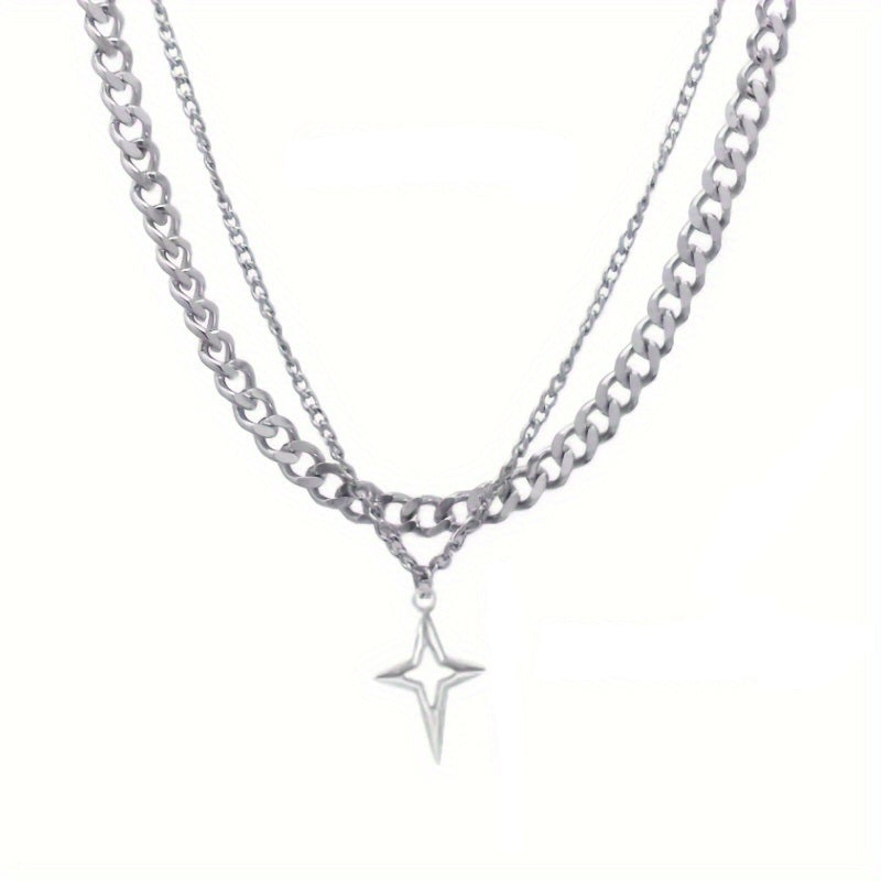 Men's Silver Plated Double Layered Star Pendant Necklaces