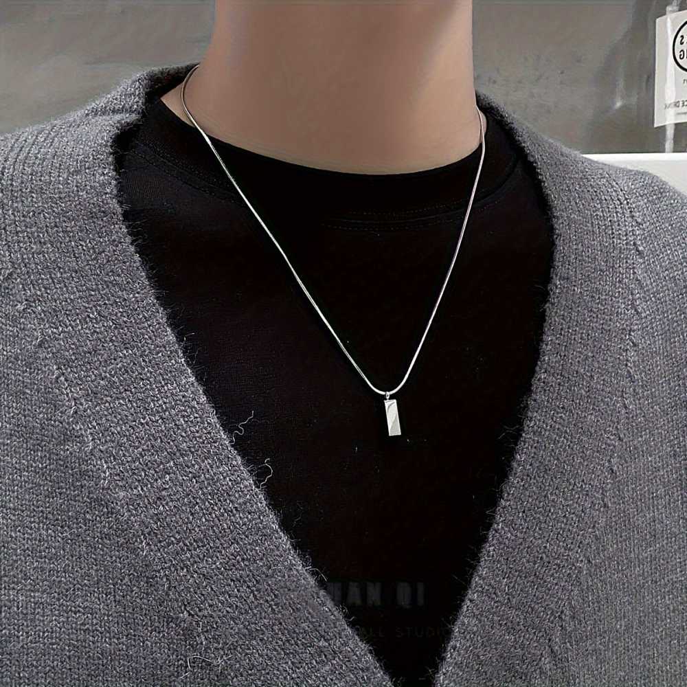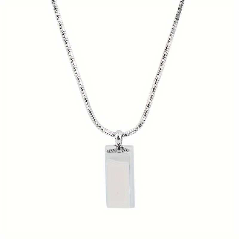 Men's Silver Plated Rectangle Pendant Necklace With Snake Chain