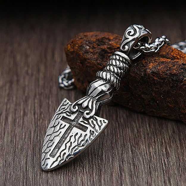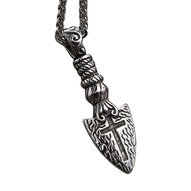 Men's Silver Plated Spear Shaped Cross Necklace With Wheat Chain Design