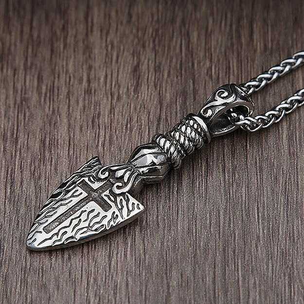 Bling Queen is an affordable fashion jewellery brand with various product types like bracelets, necklaces, earrings, rings, etc. suitable for women, men and kids. The Men's Silver Plated Spear Shaped Cross Pendant Necklace is a striking and contemporary accessory that embodies strength and style. At the heart of this necklace is a beautifully crafted spear shaped cross pendant. The sleek lines and pointed design give it a bold and masculine look, while the high quality silver plating enhances its shine. The pendant features smooth edges that reflect light elegantly, creating a captivating focal point. Its unique shape sets it apart from traditional cross designs, making it an ideal choice for those looking to express their individuality. The pendant is complemented by a stylish wheat chain, known for its intricate weave. This type of chain features a series of links that resemble stalks of wheat, adding texture and depth to the overall design. The wheat chain not only enhances the visual appeal but also ensures a comfortable fit, making it suitable for everyday wear.