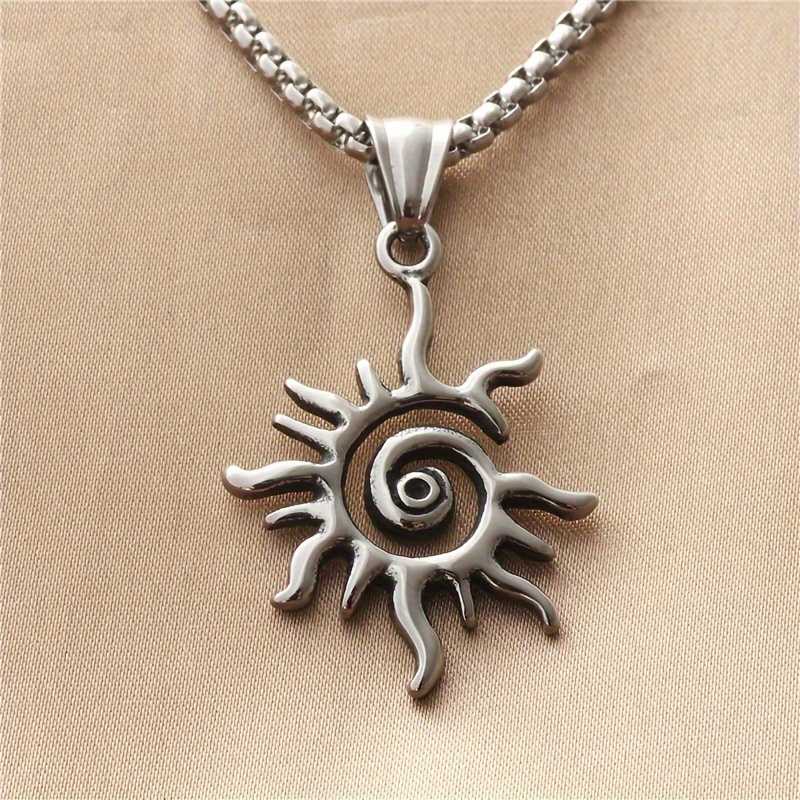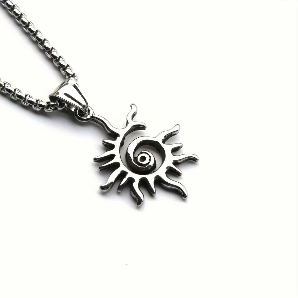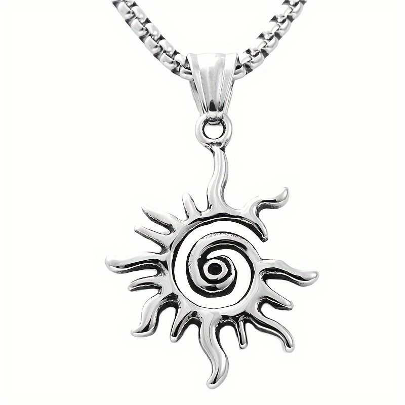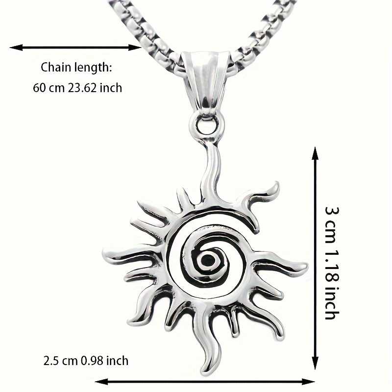 Men's Silver Plated Sun Pendant Necklace with Round Box Chain