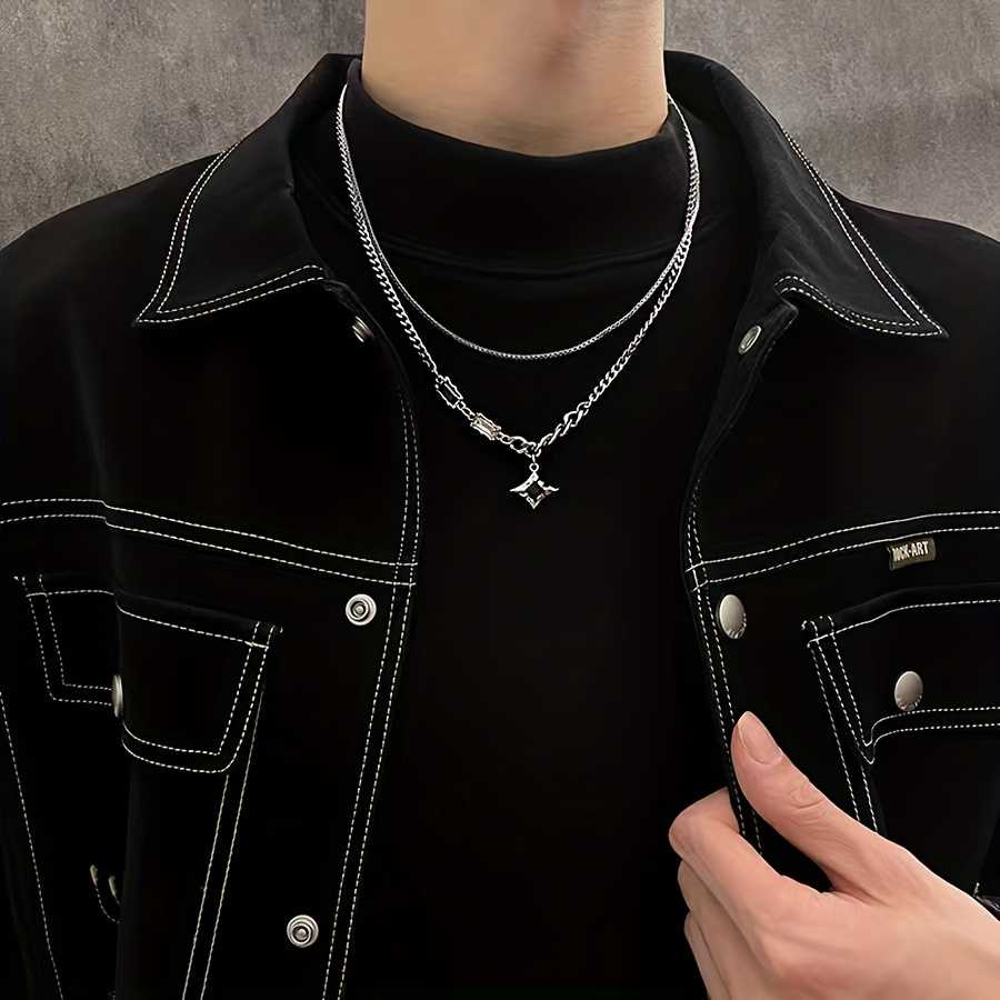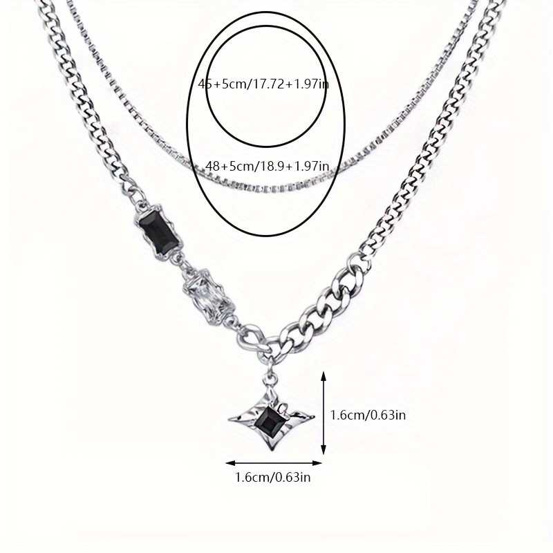 Men's Silver Plated Zirconia Baguette Double Layered Star Pendant Necklace