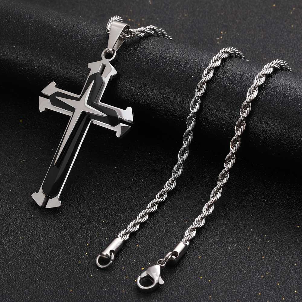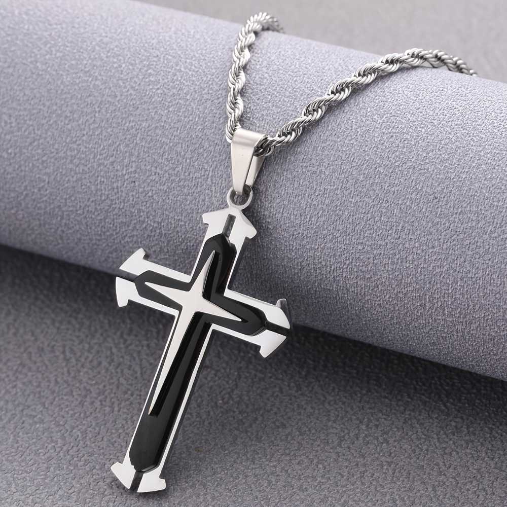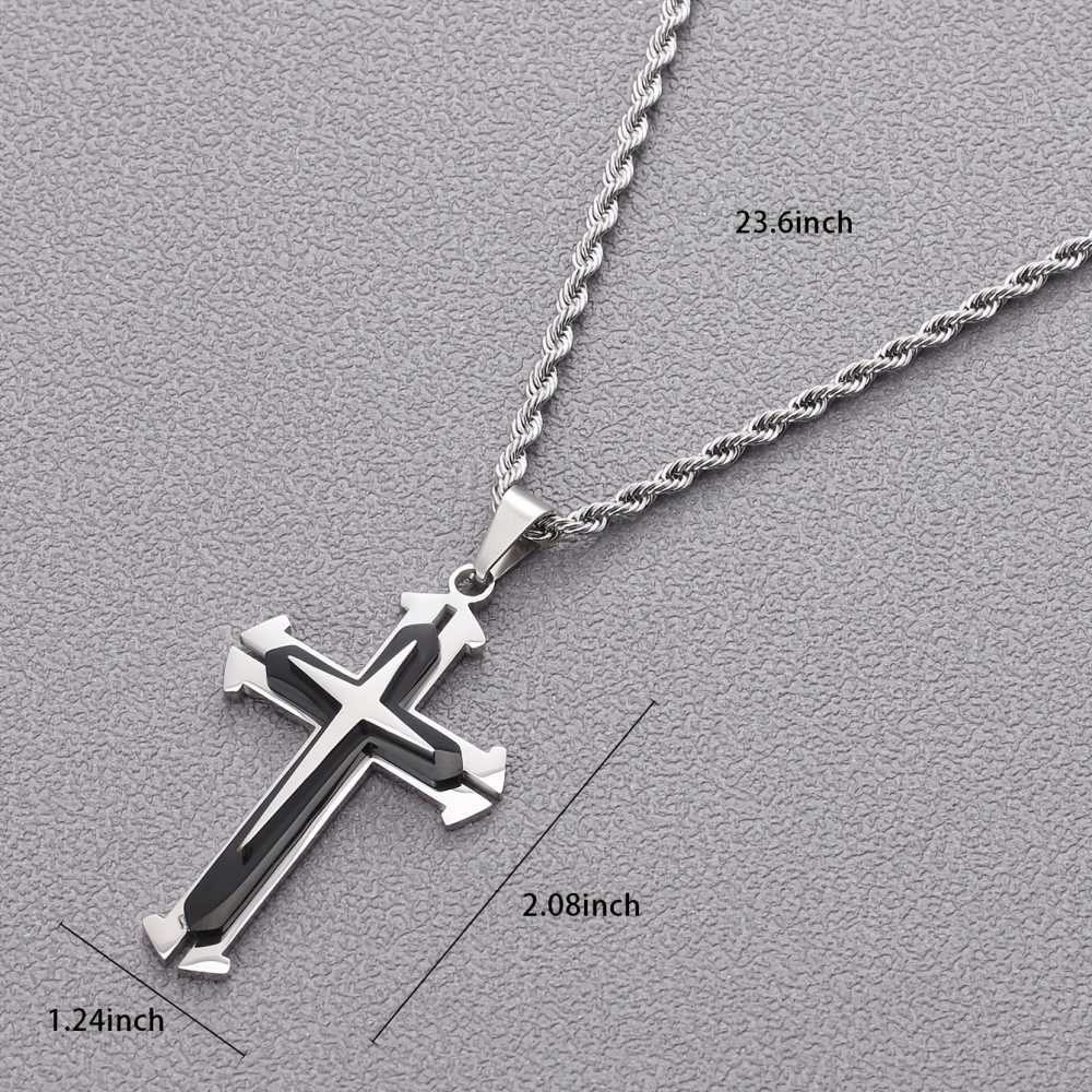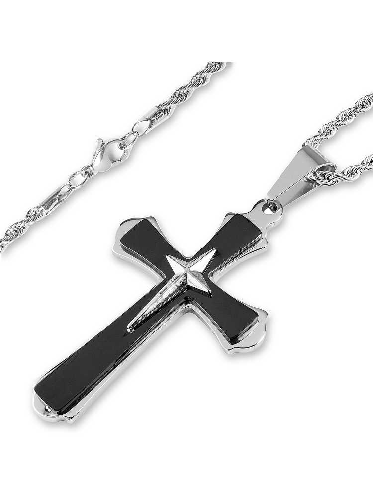 Men's Stainless Steel Black Cross Pendant Necklace with Lobster Clasp