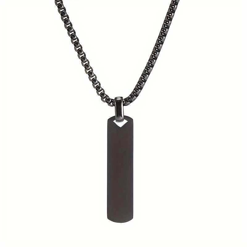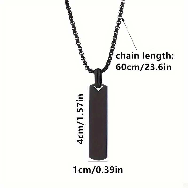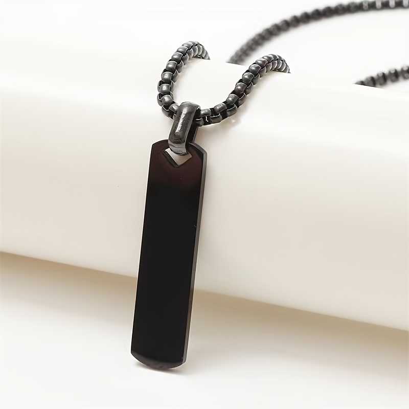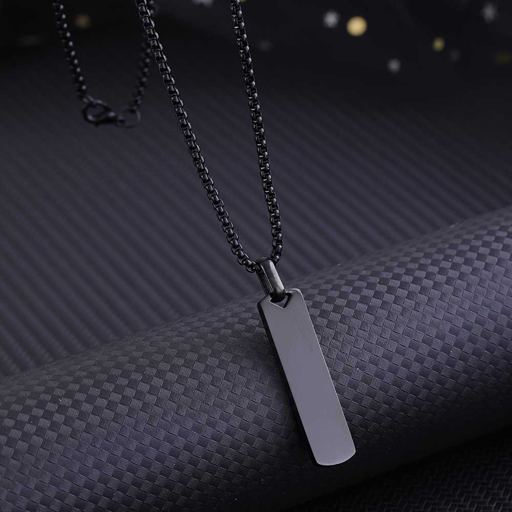 Men's Stainless Steel Chain with Black Hanging Tag Pendant Necklace
