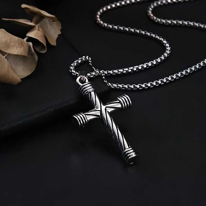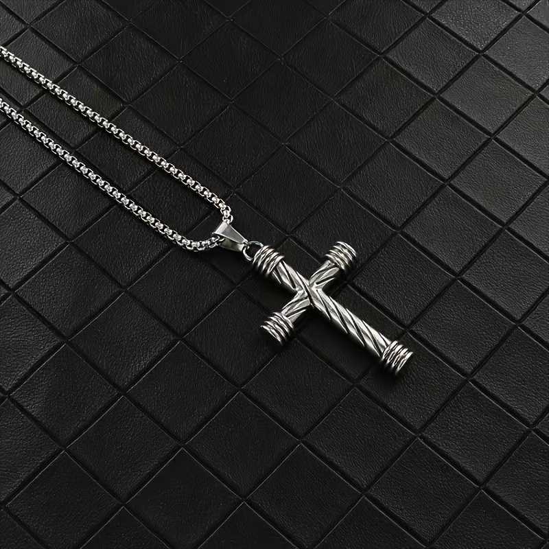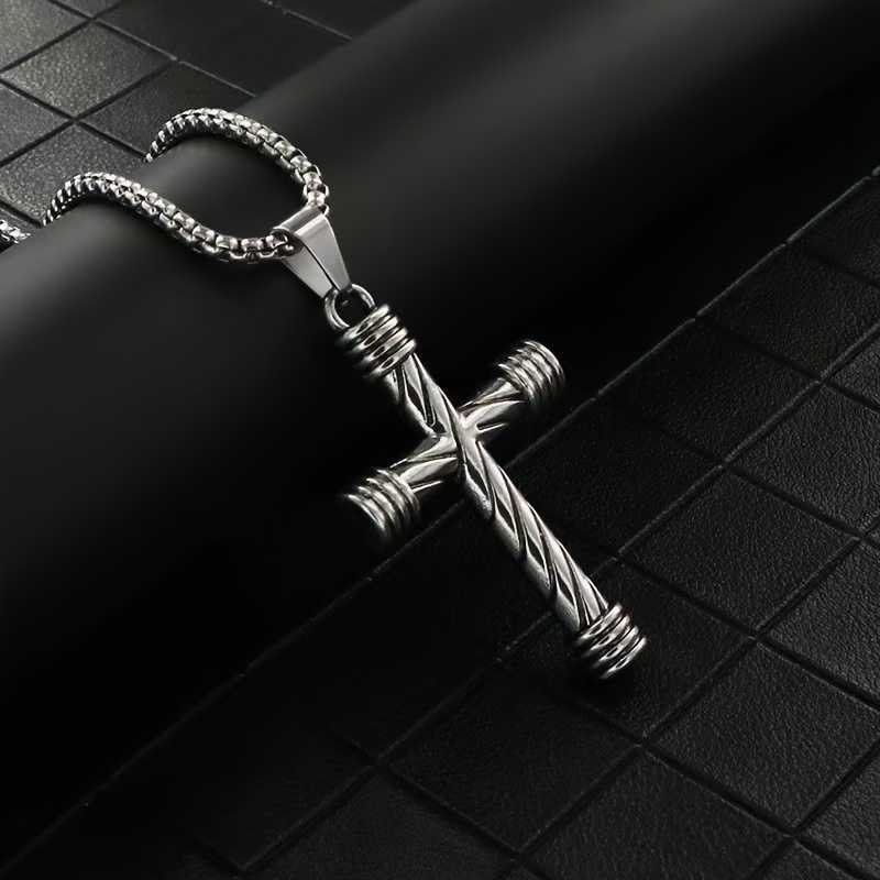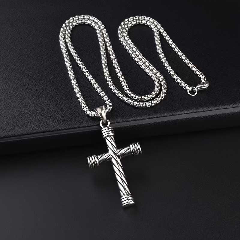The Men's Stainless Steel Cross Pendant Necklace with Round Box Chain is a timeless accessory that seamlessly blends faith and fashion. At the center of this necklace is a meticulously crafted cross pendant, characterized by its sleek and modern lines. The cross design is bold yet refined, embodying a sense of strength and spirituality. The polished surface of the stainless steel pendant reflects light beautifully, creating an eye catching effect. Crafted from high quality stainless steel, this necklace is designed to resist tarnishing, making it suitable for everyday wear. The round box chain adds an extra layer of style while contributing to the necklace's modern appeal. This combination creates a harmonious balance between the pendant and chain, enhancing the overall aesthetic of the necklace. This necklace is not just a piece of jewelry, it’s a statement of identity and belief, making it a cherished addition to any man's collection.