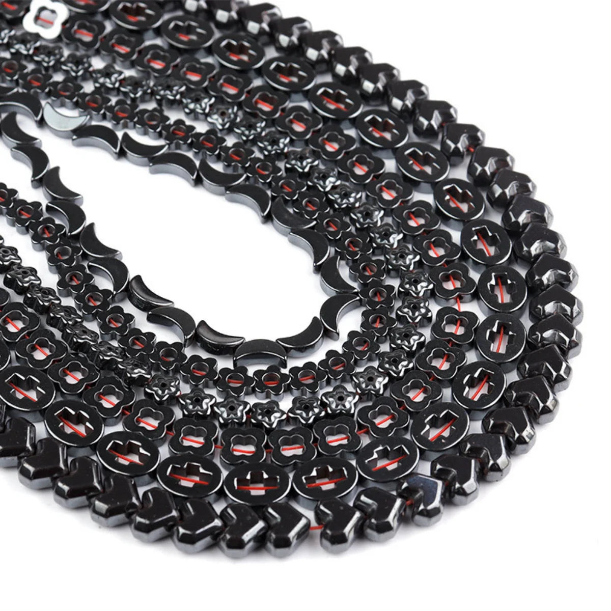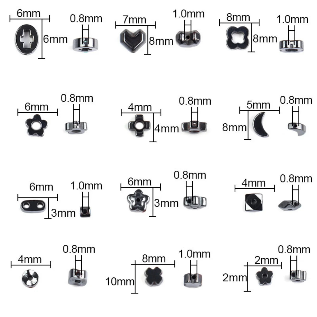 Explore your creativity with these hematite beads that come in heart, round, star, square, and cross shapes. Perfect for making unique jewelry pieces.