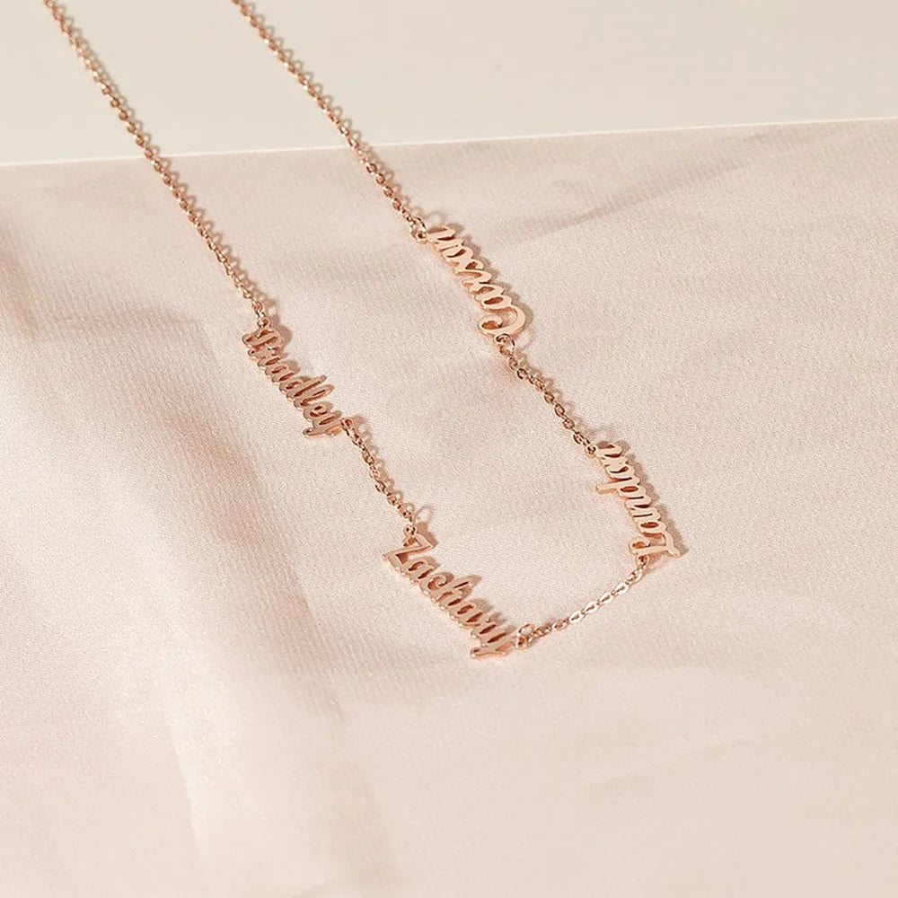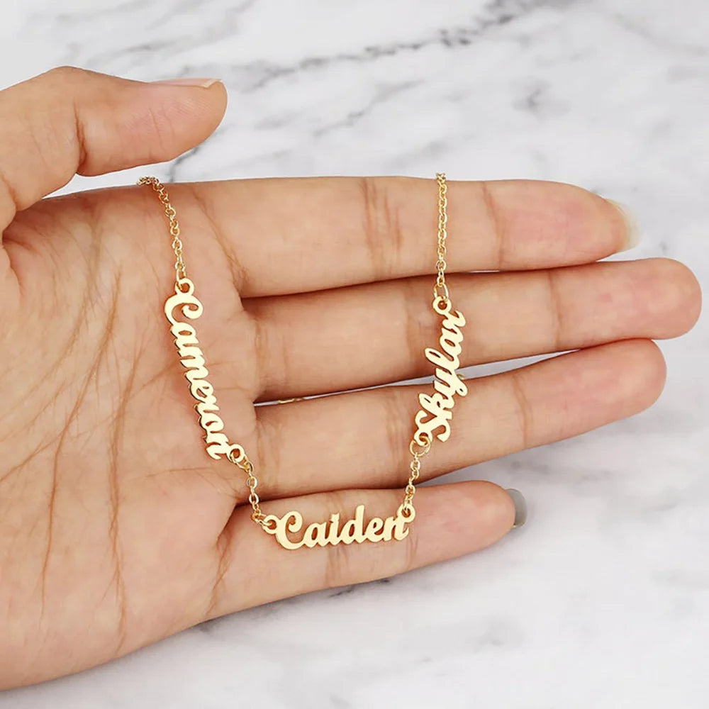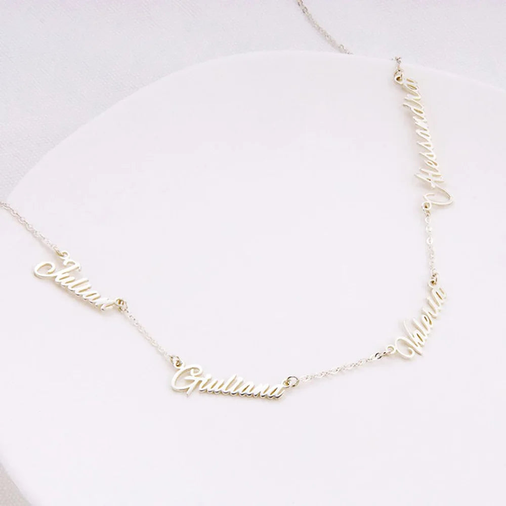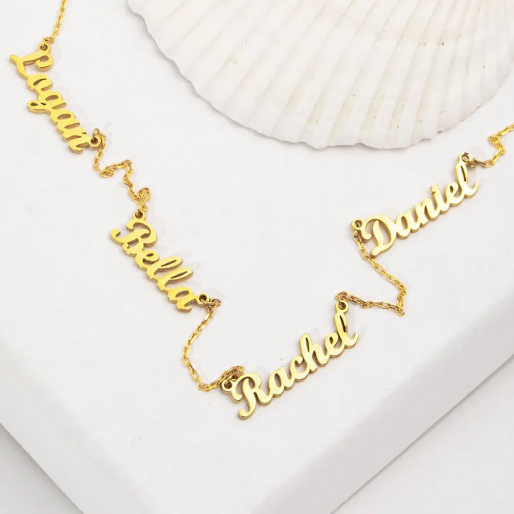 This stainless steel necklace features dainty charms engraved with names of up to 5 family members. A perfect gift for grandmothers to cherish their loved ones.