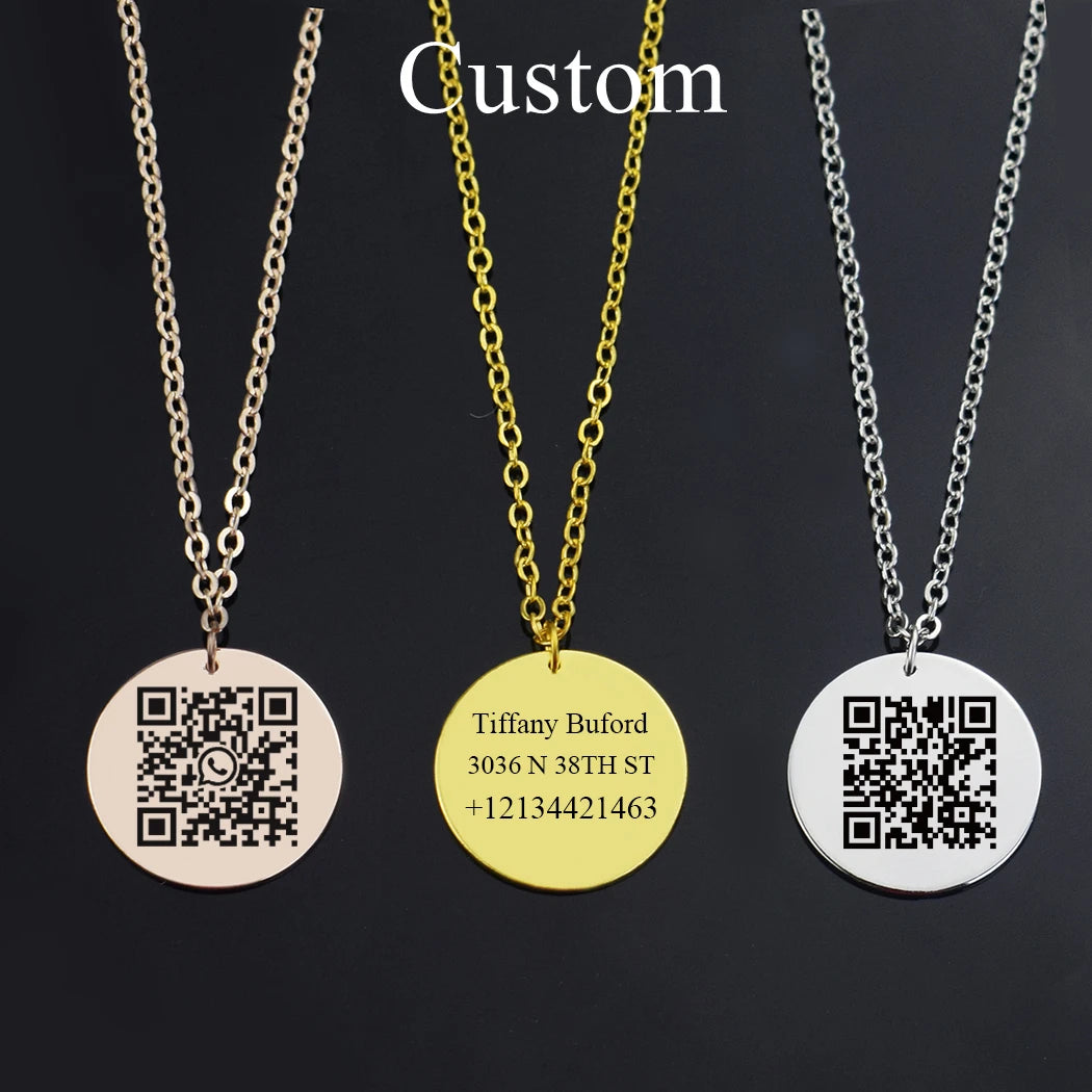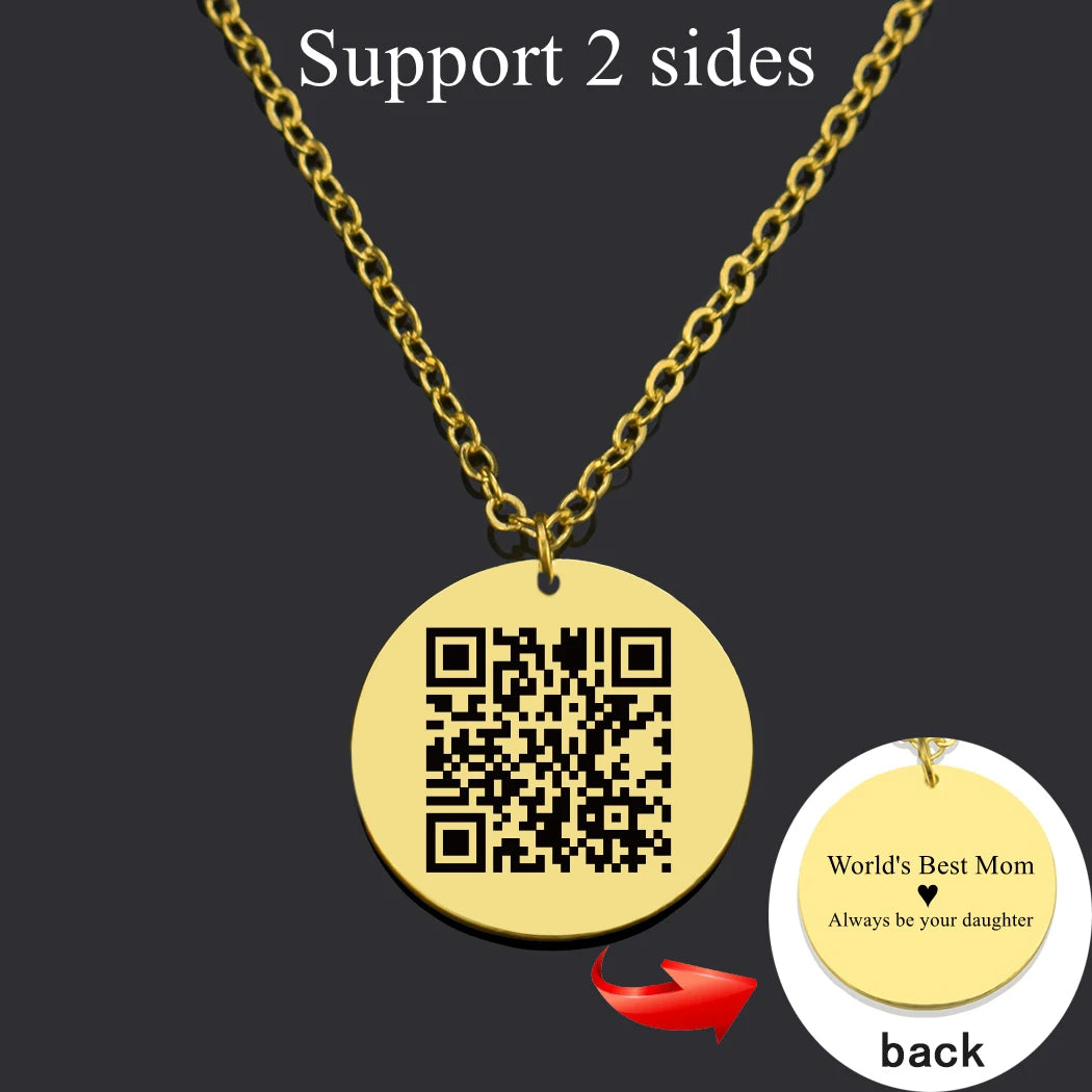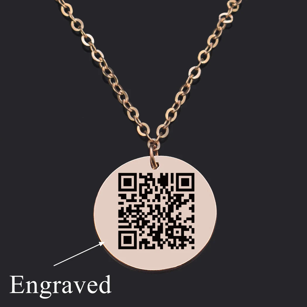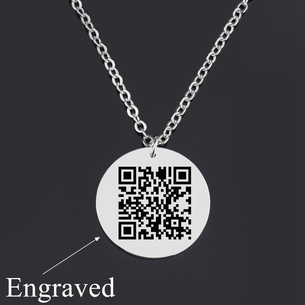 Customize this QR code necklace with personalized text engraving. Made of durable stainless steel, it makes a perfect birthday or anniversary gift.