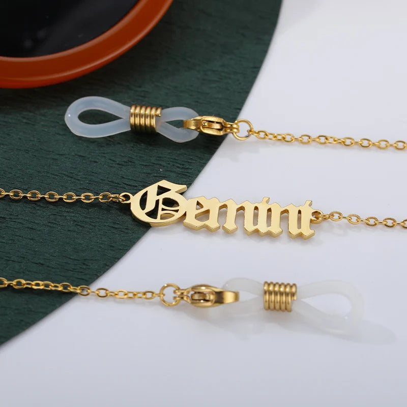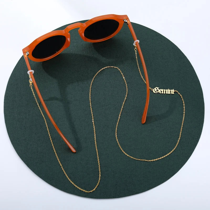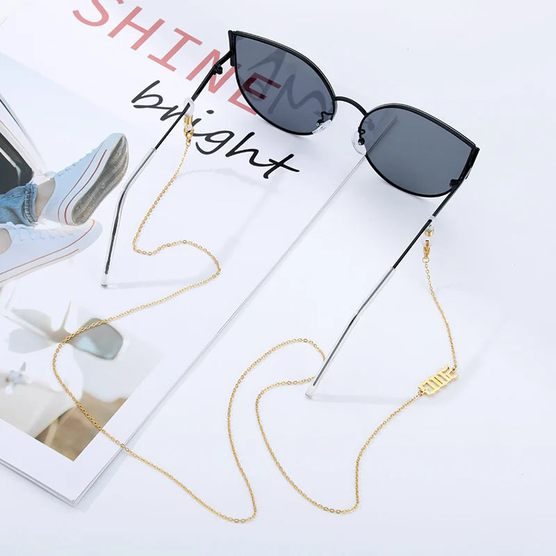 Stainless steel glasses name chain designed for women to keep sunglasses handy and stylish.