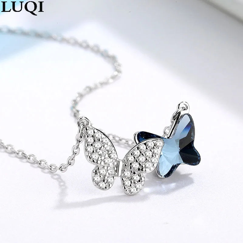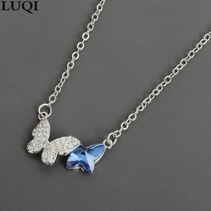 This fashionable necklace features a light S925 silver crystal butterfly pendant, perfect for adding a touch of elegance to any outfit. It makes a great gift for your girlfriend.
