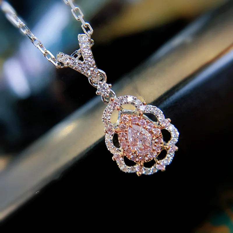 This elegant necklace features charming pink zircon stone pendants on a silver chain, perfect for women. It can be a lovely accessory for weddings or a thoughtful gift.