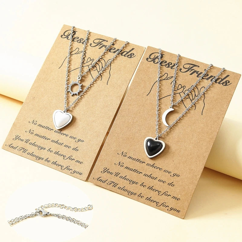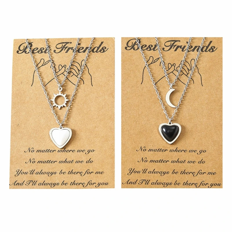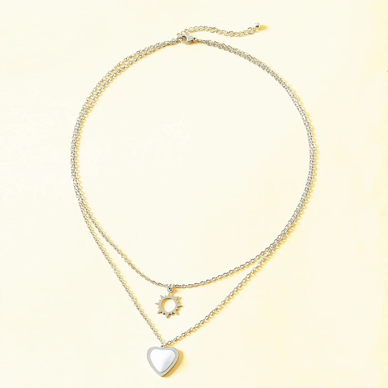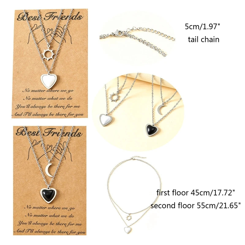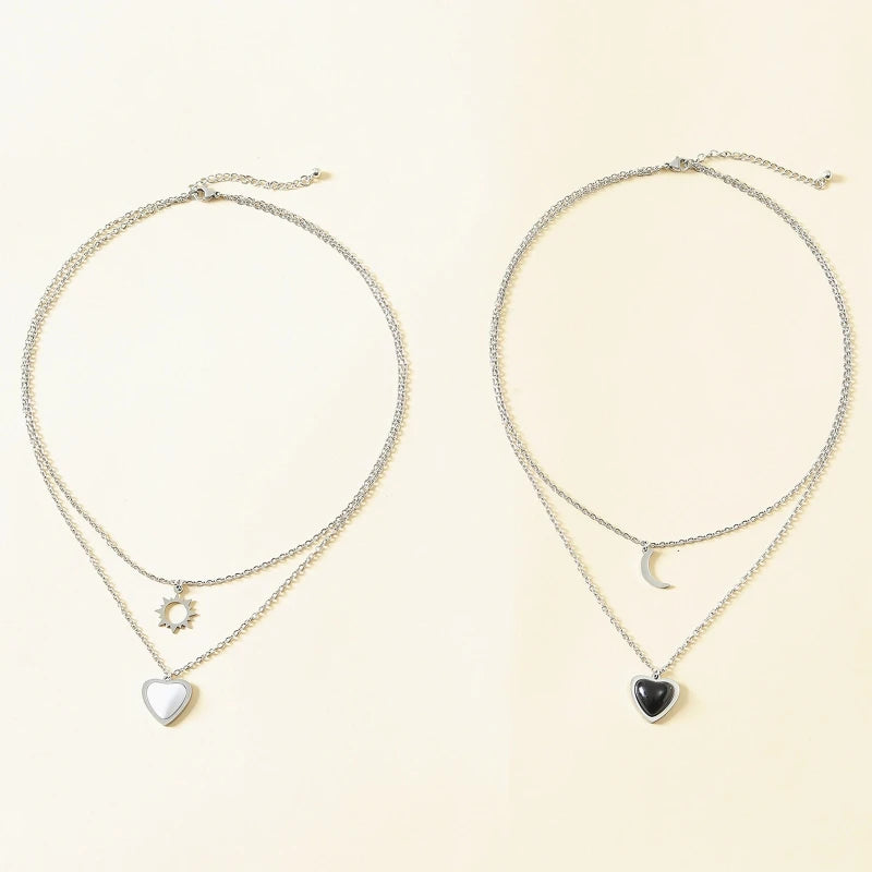 This double layer necklace features a sun and moon design, perfect for adding a touch of celestial style to your outfit. Made of high-quality materials, this necklace is durable and won't fade.