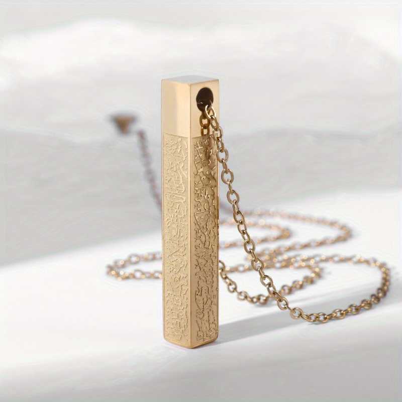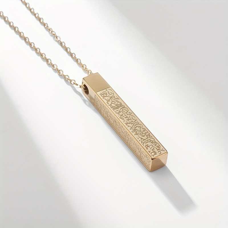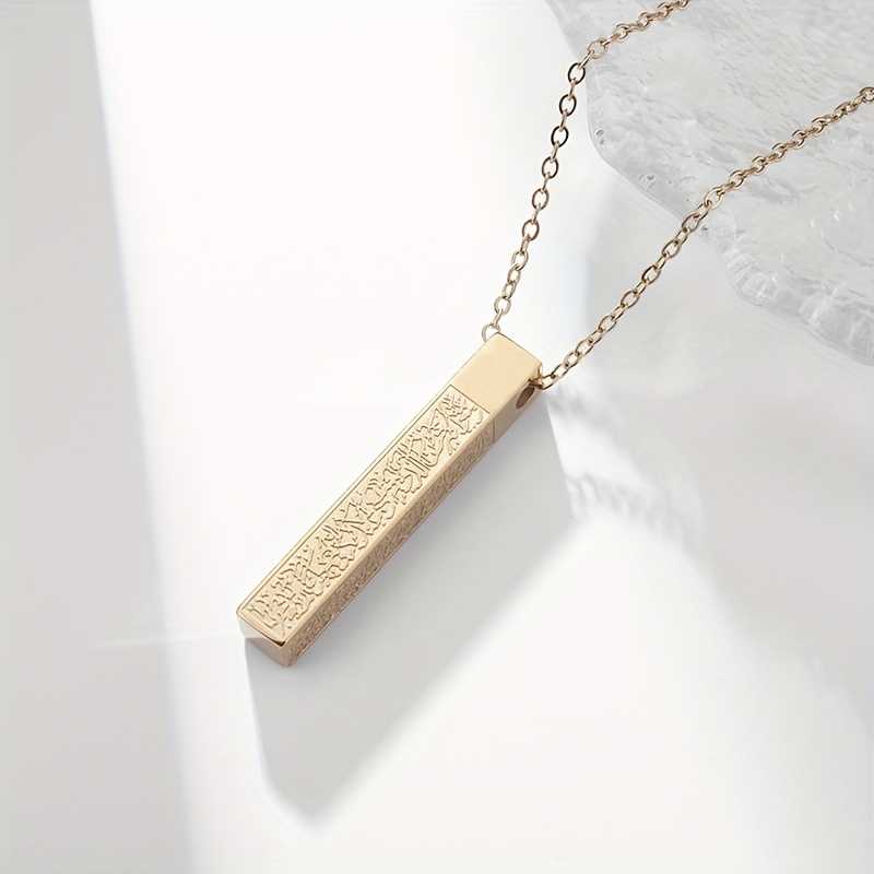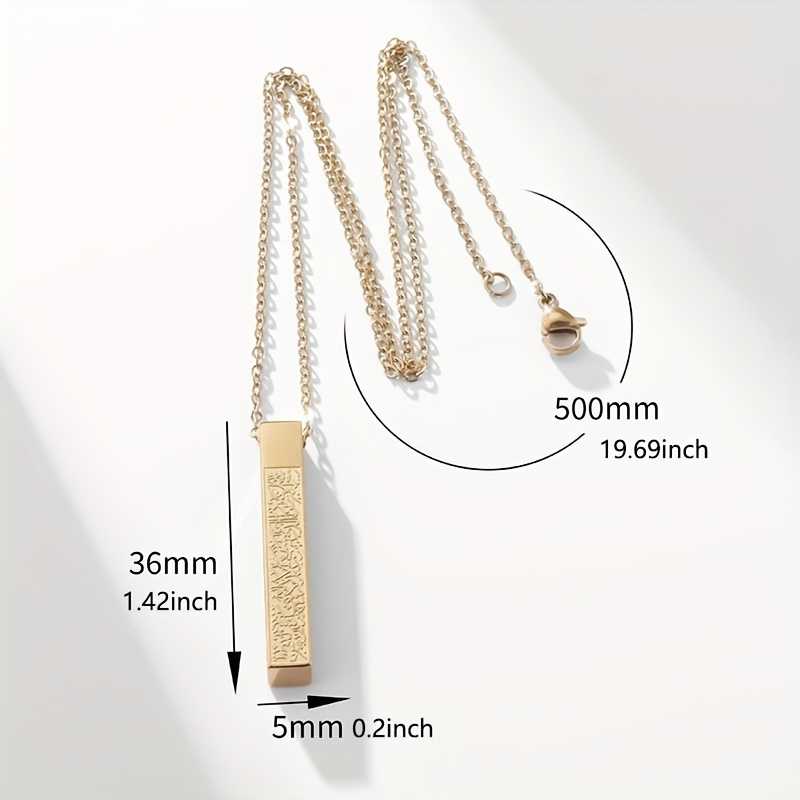 Unisex Gold Engraved Rectangular Pendant Necklace With Cable Chain