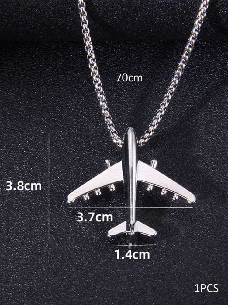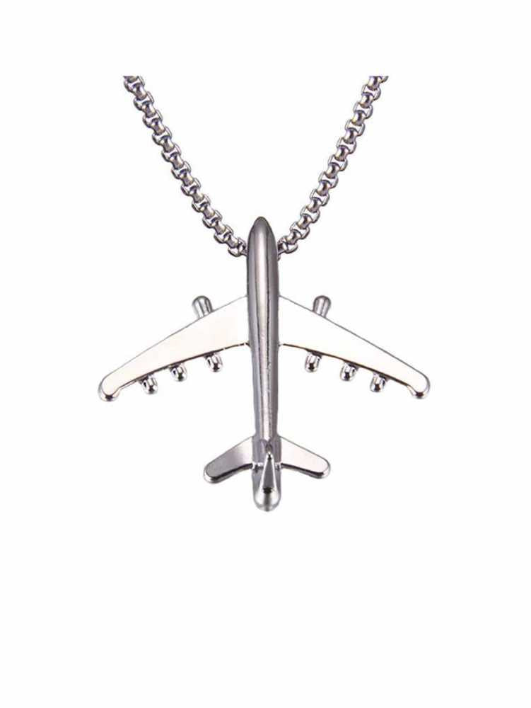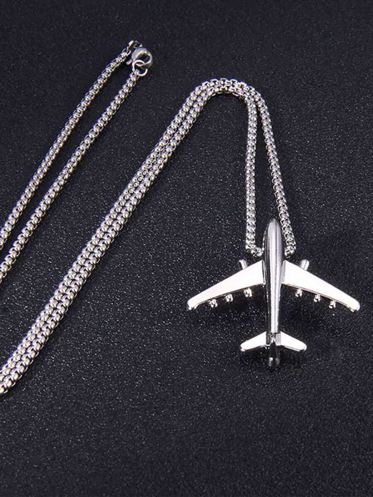 Unisex Silver Plated Airplane Pendant Necklace With Hip Hop Chain