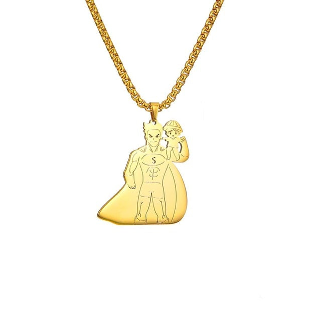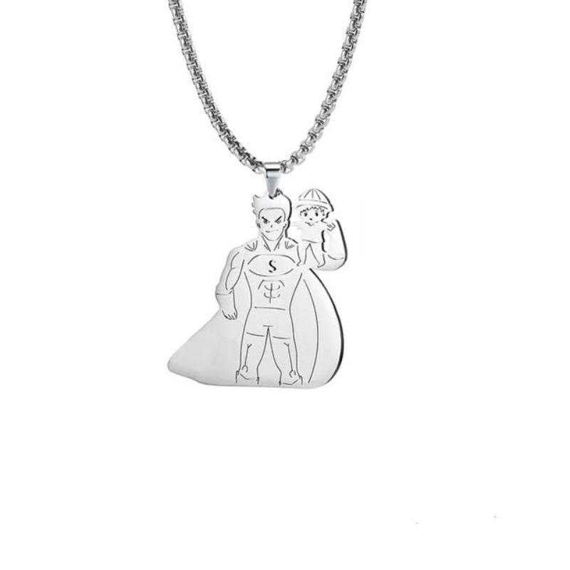 Unisex Stainless Steel Super Dad And Boy Pendant Necklace