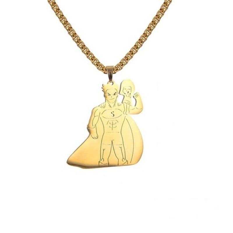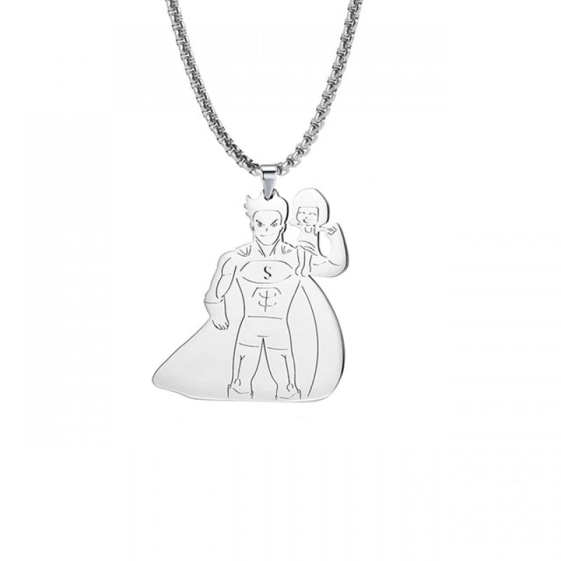 Unisex Stainless Steel Super Dad And Girl Pendant Necklace