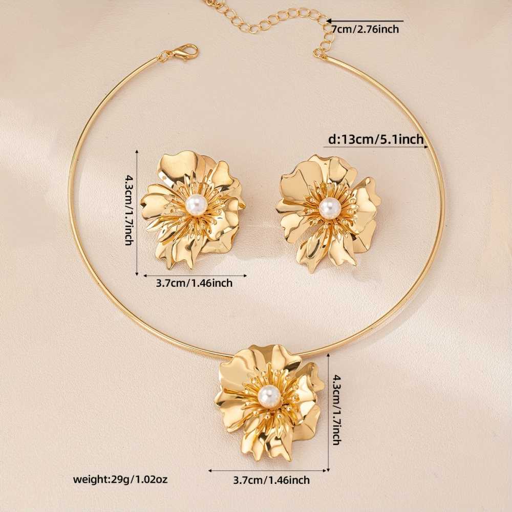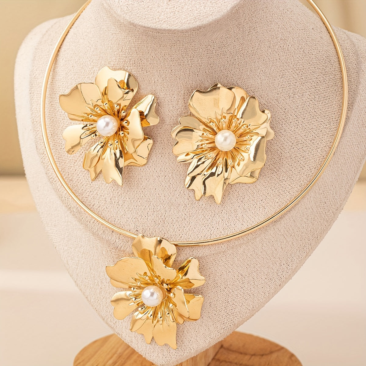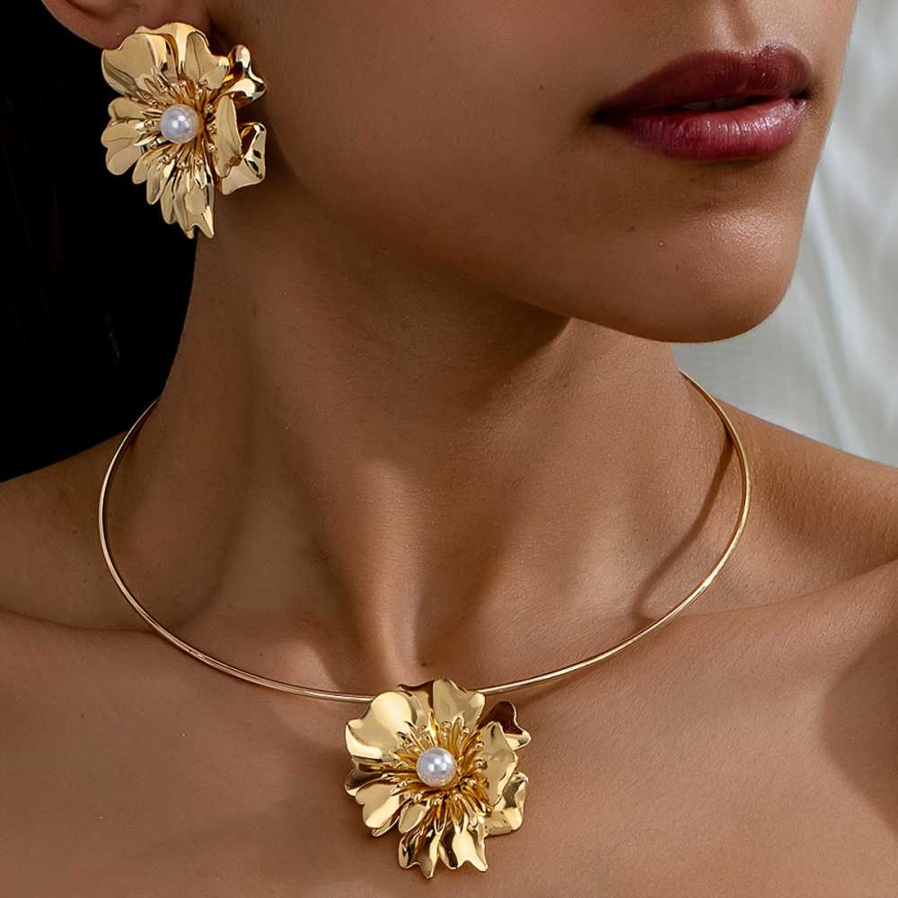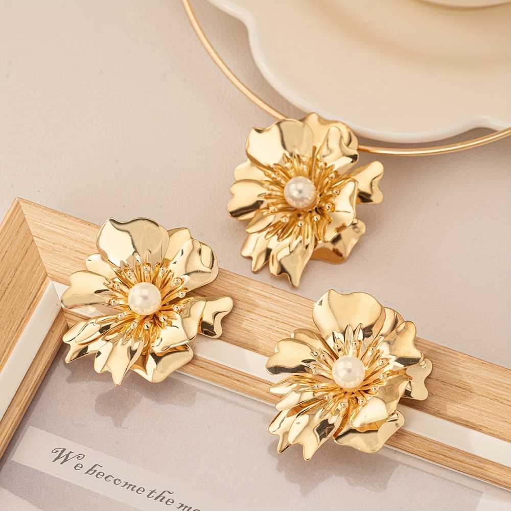 Vibrant Golden Alloy Flower Necklace & Earrings Set for Parties & Festivals
