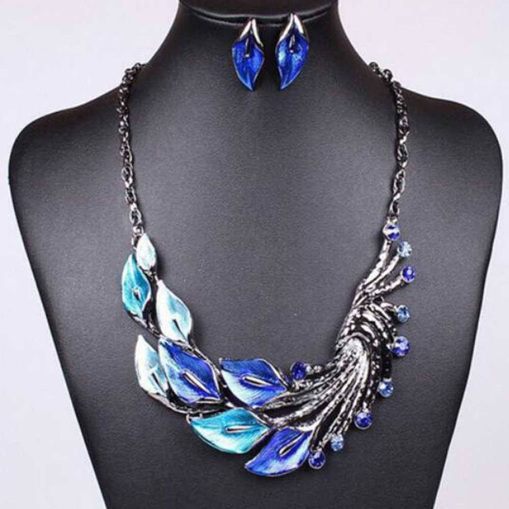 The statuesque blue colour necklace with waterdrop stud is designed as an amalgam of traditional and modern jewellery. A perfect gift choice for your loved ones.
